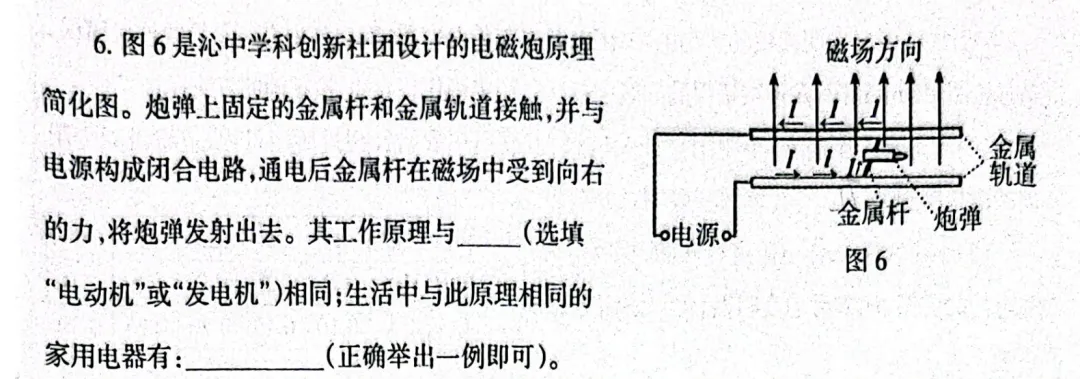 第二空要注意题目要求是“家用电器”,不要举成电灯、电饭煲这类纯电阻用电器,它们利用的是电流的热效应,而不是磁场对电流的作用。也不要举成发电机、电磁起重机等非家用电器。
