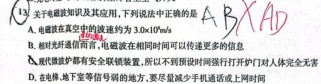 A. 电磁波在真空中的波速约为 3.0×108m/s3.0×108m/s