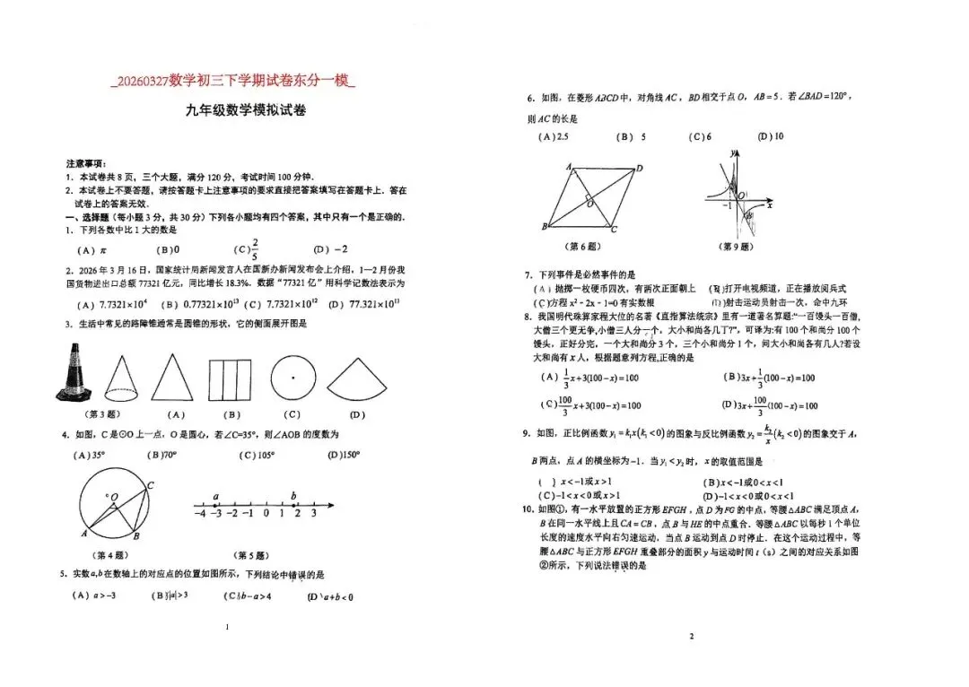 最新!南昌2026初三零模真题试卷及答案(附英语听力音频及各科答题卡)