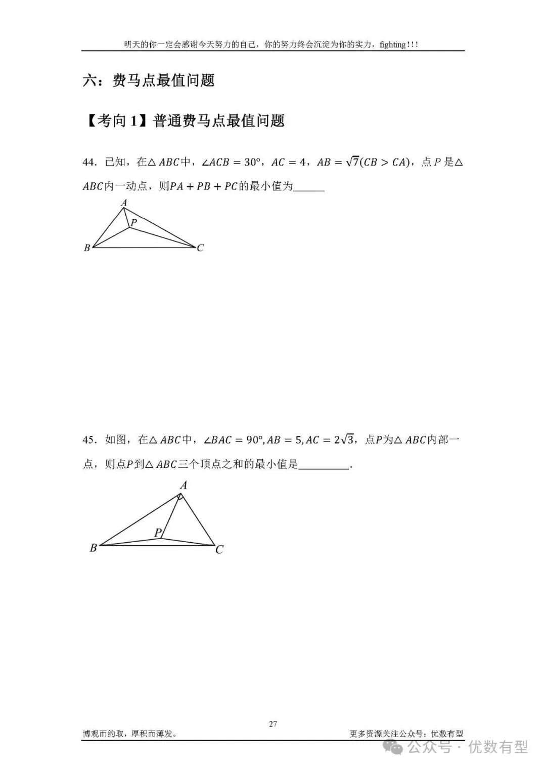 >20260327数学初三下学期试卷东分一模T15压轴解析 费马点问题,下载在文末链接,评论区更新答案,