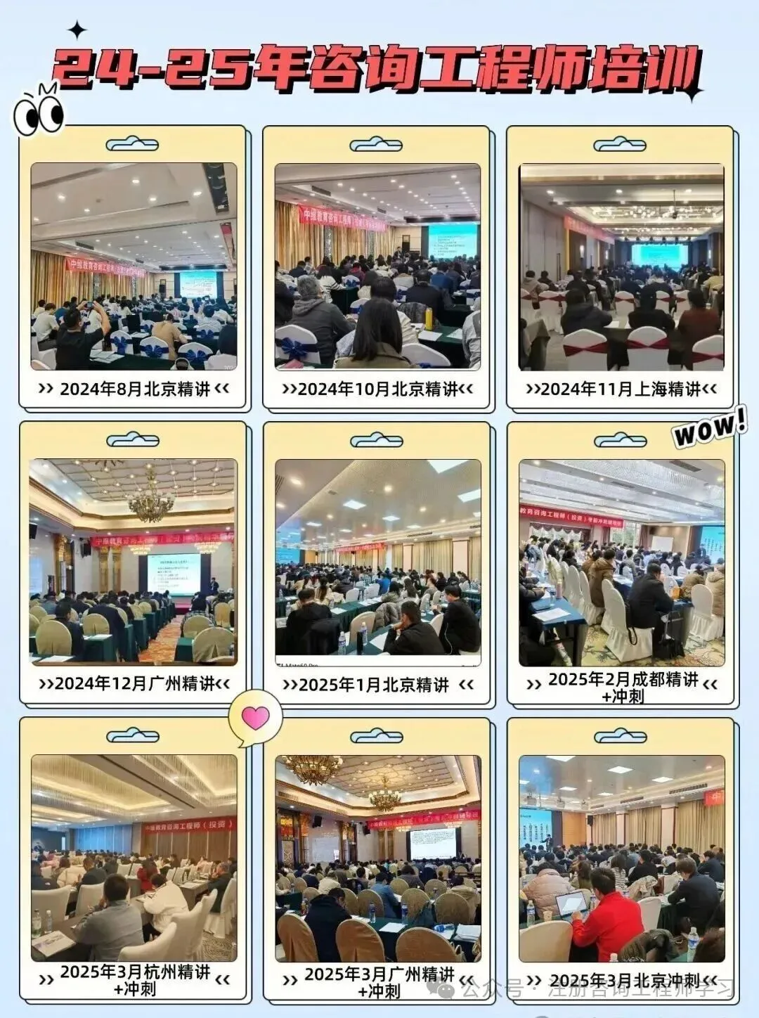 为备考2025年咨询工程师(投资)考试,中维教育共举办了11次咨询现场面授课程。足迹遍布祖国的大江南北。辐射全国各地。