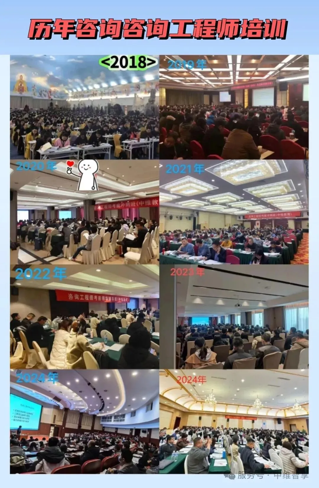 为了满足全国大中型国企央企设计院、咨询项目管理公司参考人员多,不方便外地集训。中维智享可为大中型企业定制2025年咨询工程师(投资)企业内部培训方案。有需求的企业负责人尽快和邢老师预定老师档期。下图为近几年部分内训企业现场学习氛围图。