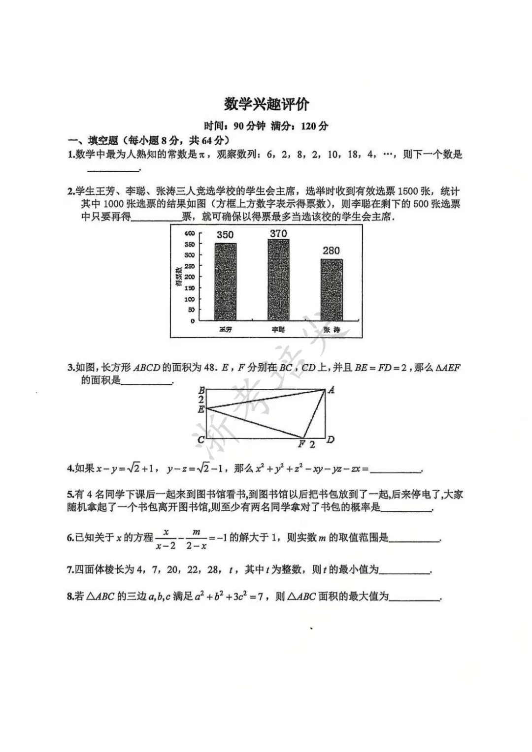 杭州第二中学2025年签约考数学兴趣评价试卷
