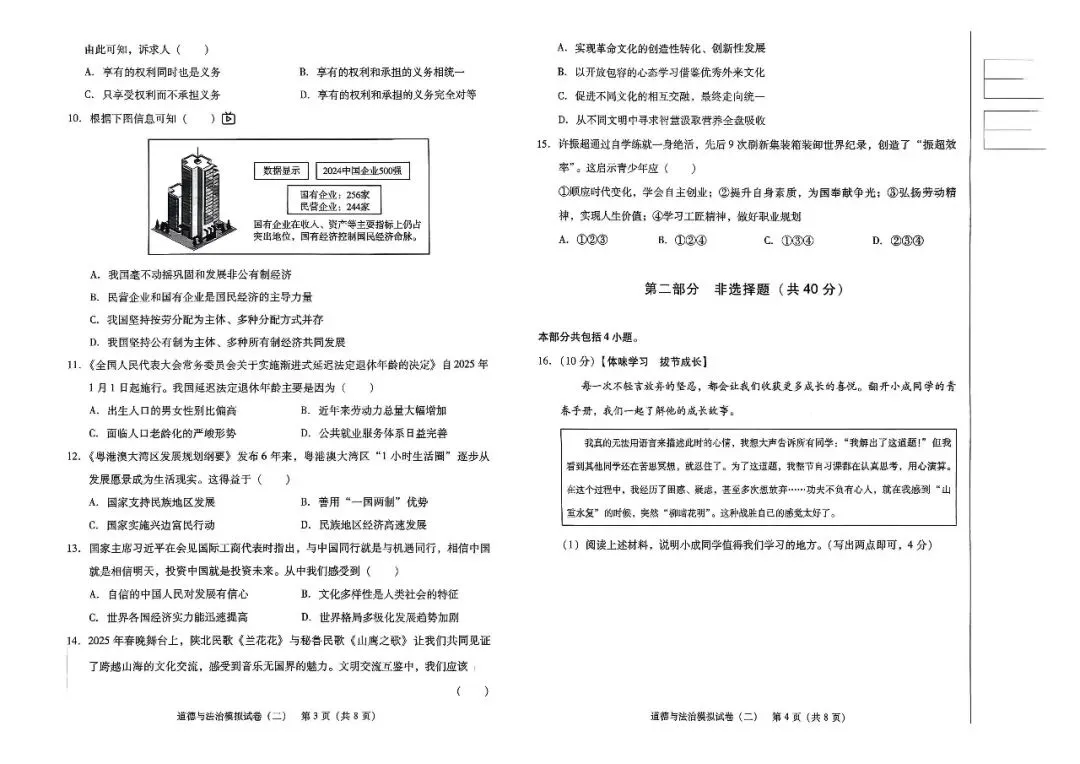 辽宁省中考道法模拟试卷(二)——中考最后一套卷2026年(辽宁专版)