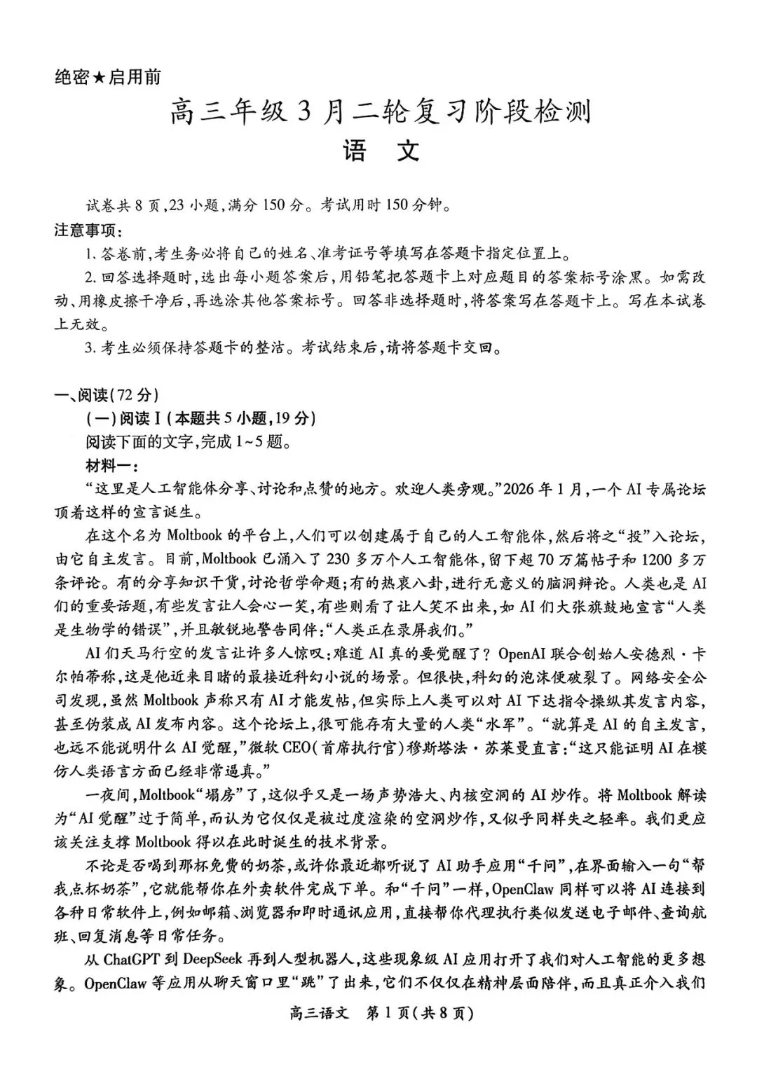 >【试卷+答案】2026年江西省稳派上进联考高三年级3月二轮复习阶段检测全科汇总!