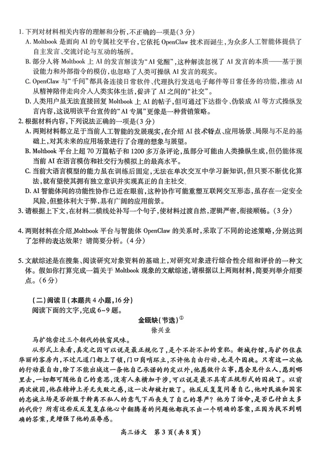 皖北协作区2026届安徽高三联考政治试卷及答案解析