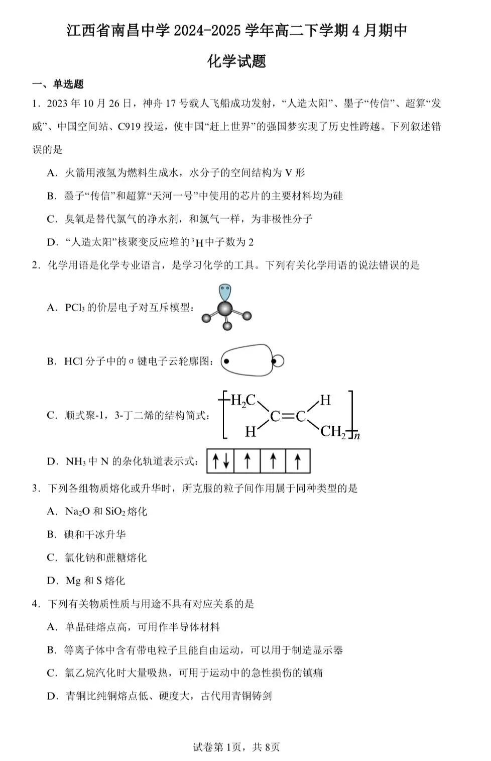 2.江西省南昌中学2024-2025学年高二下学期4月期中化学试题