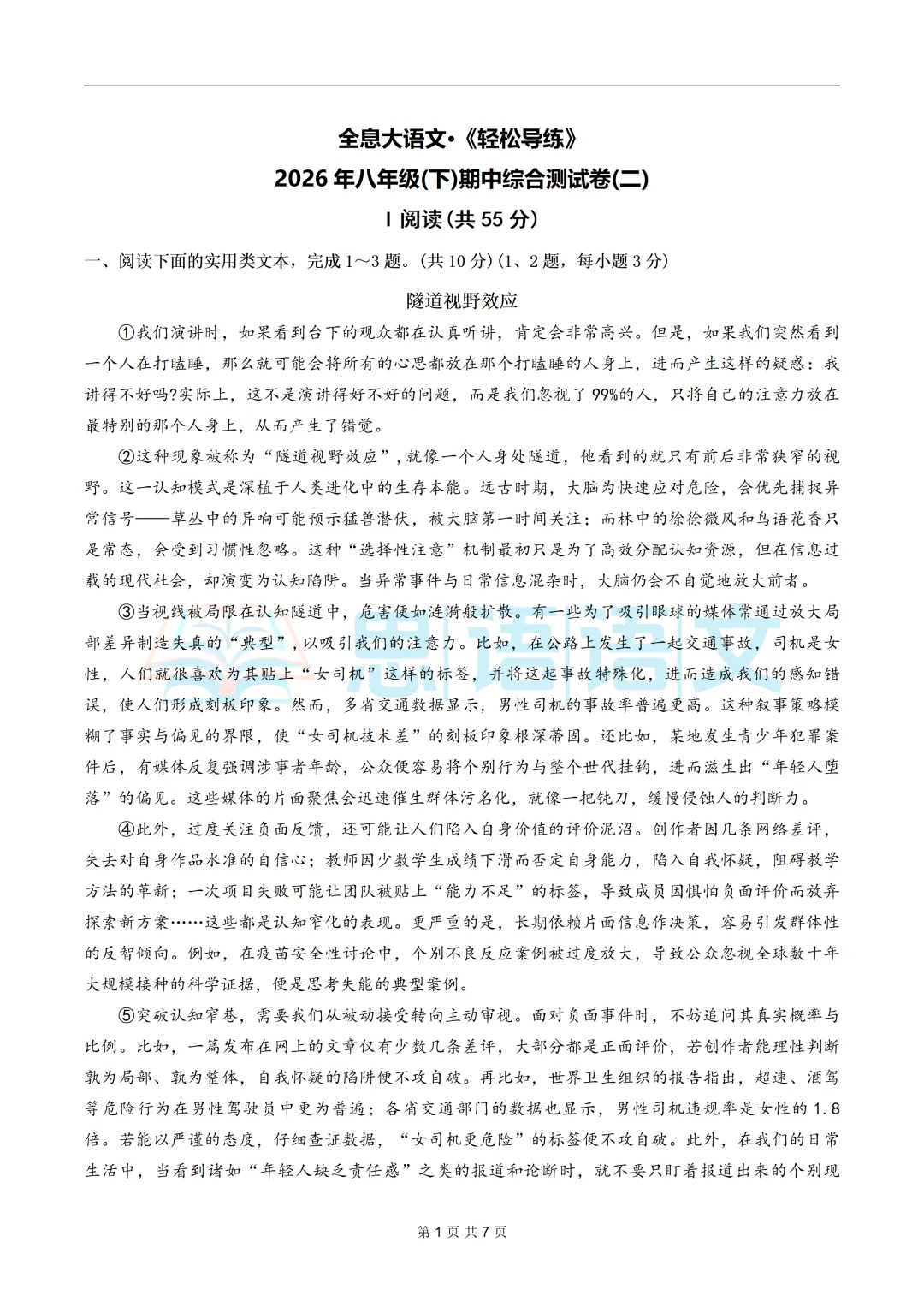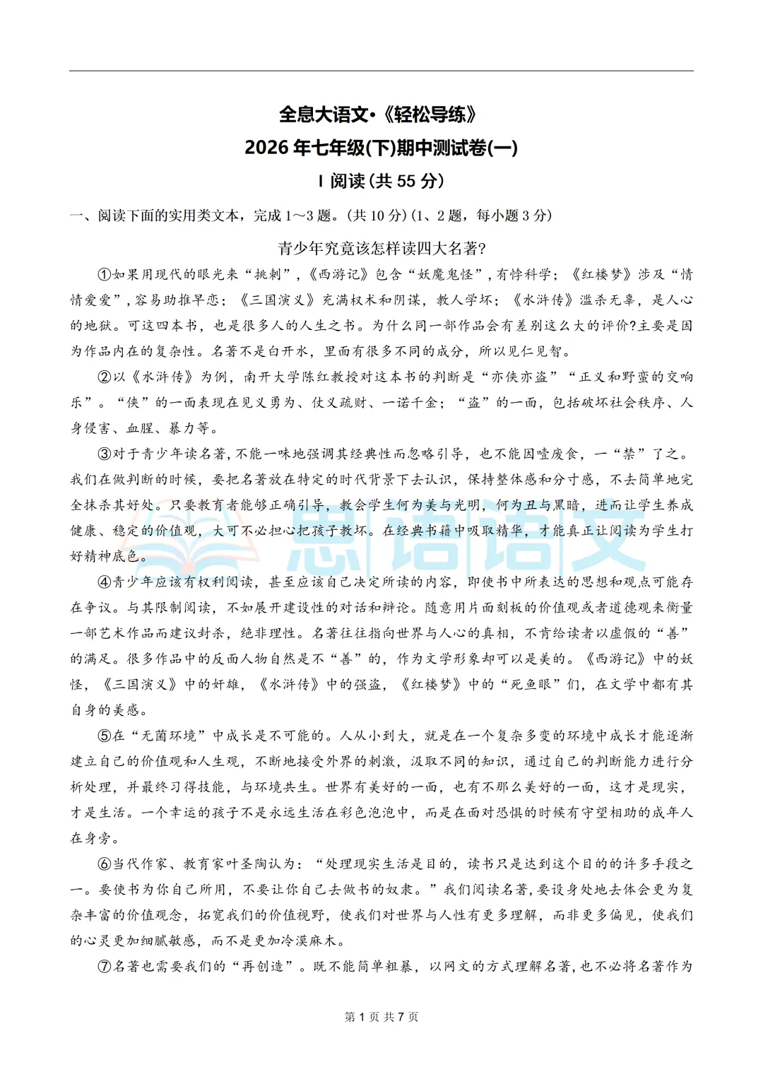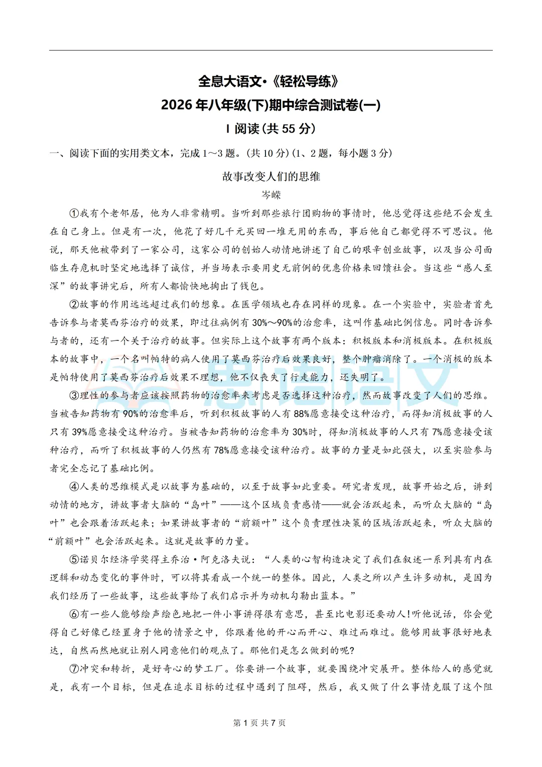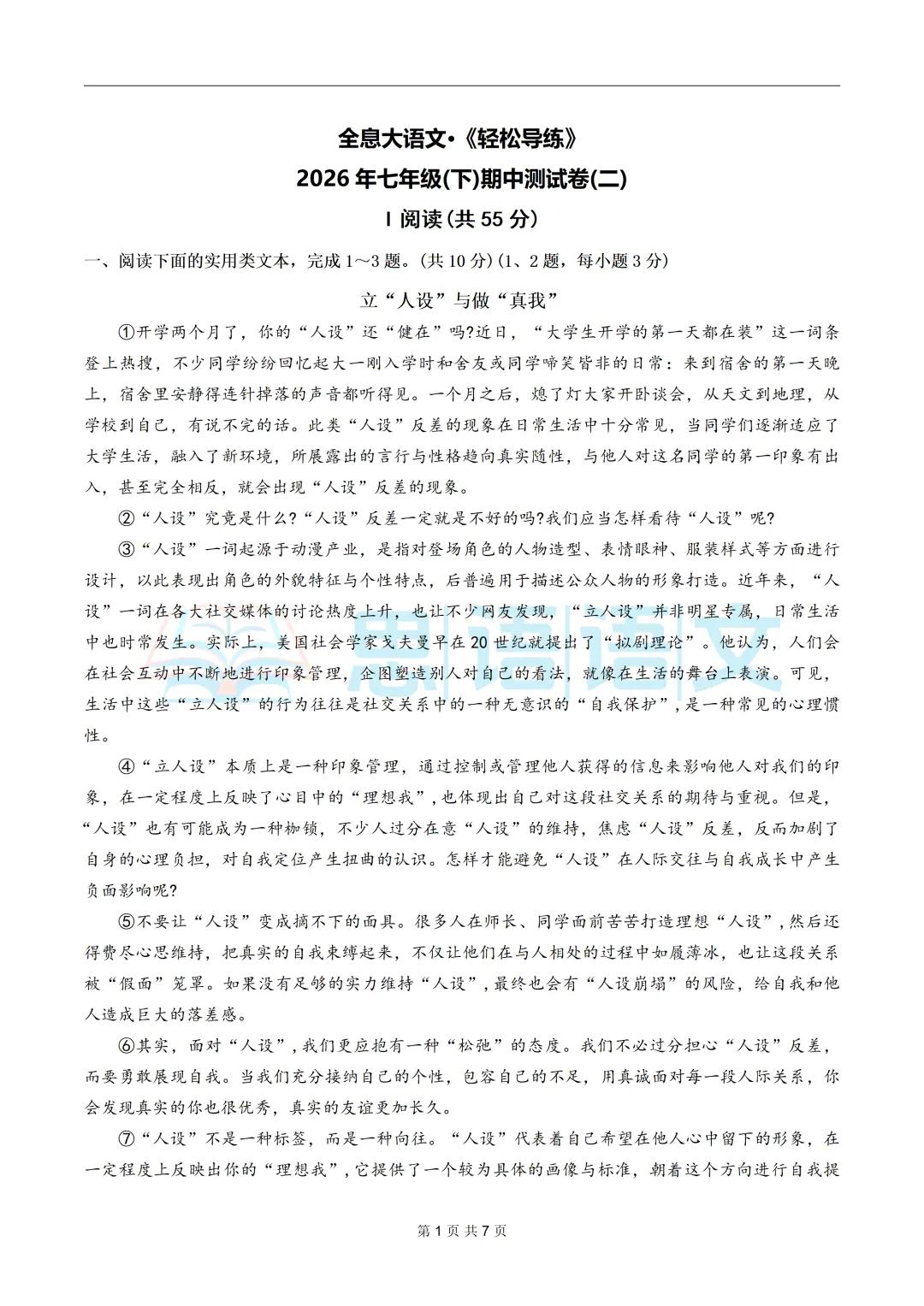 5、【试卷分享】2026下学期全息系列七八年级第一单元测试卷