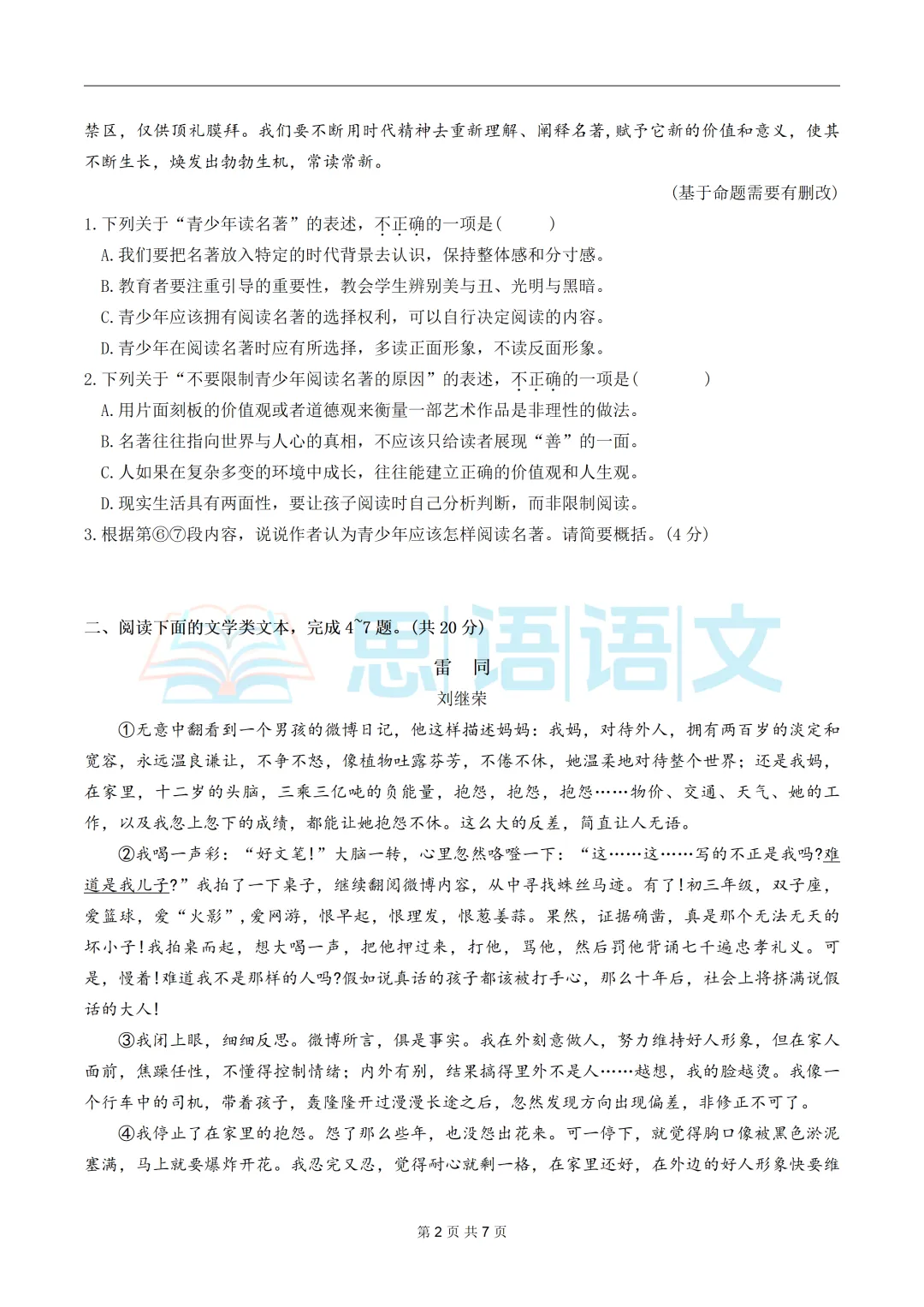 如果您需要word/pdf版试卷,请私信联系,有偿分享。