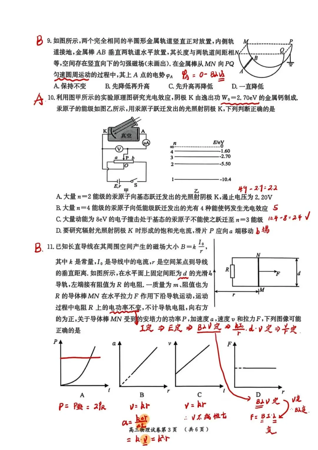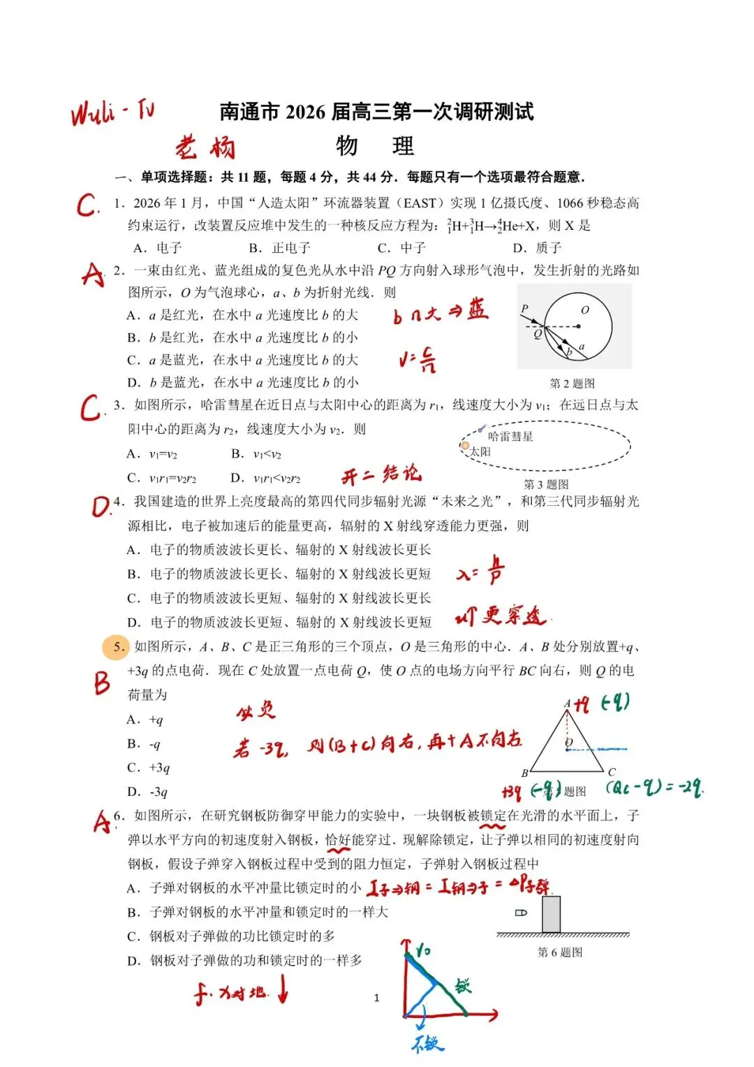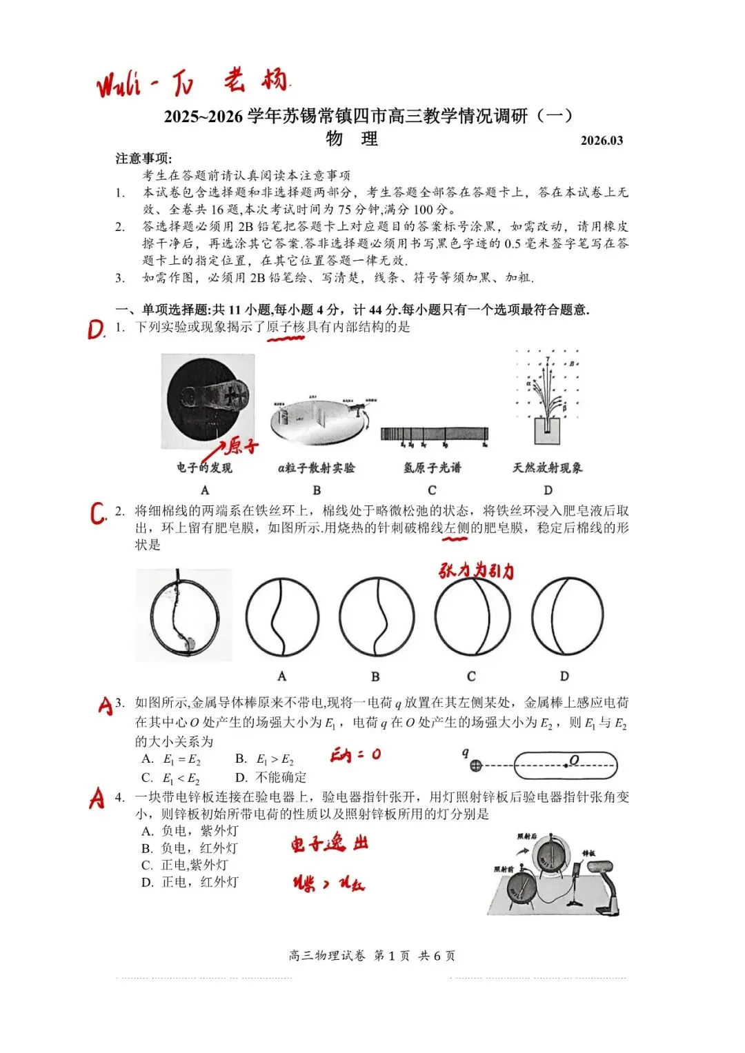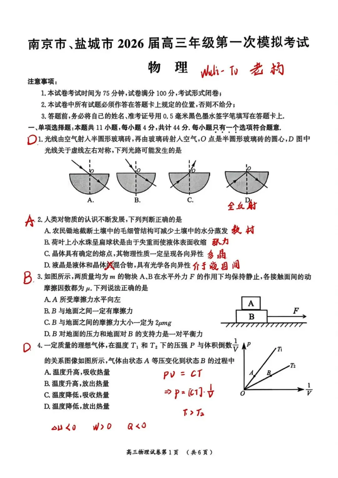>26江苏3月一模物理试卷汇总及分析