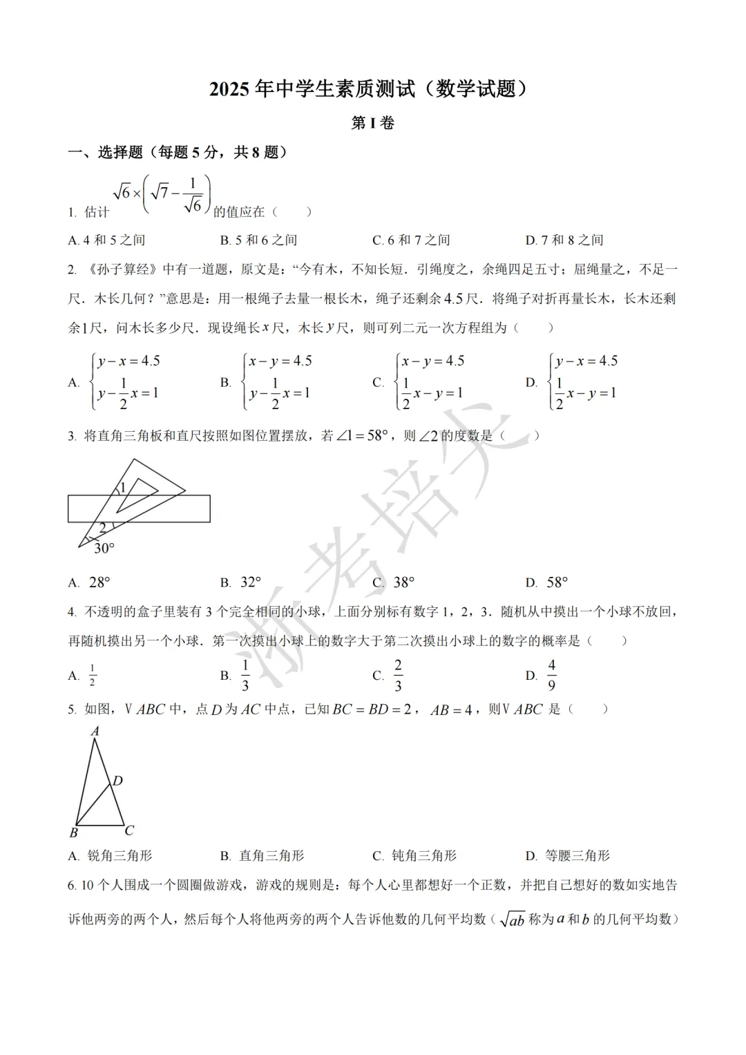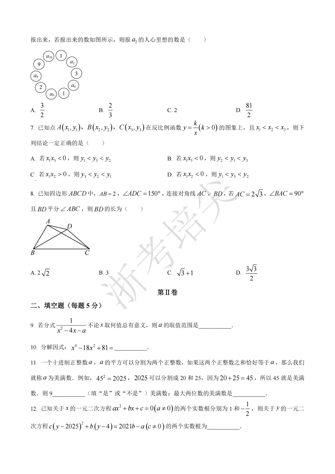 2025年浙江省宁海中学提前招生数学试卷及答案解析