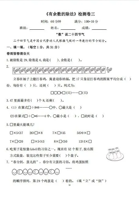 二年级下册数学,有余数的除法已经学完啦。这个知识点是本学期的重要基础,一定要练扎实、不马虎,踏踏实实过关,把这个知识点稳稳拿下!