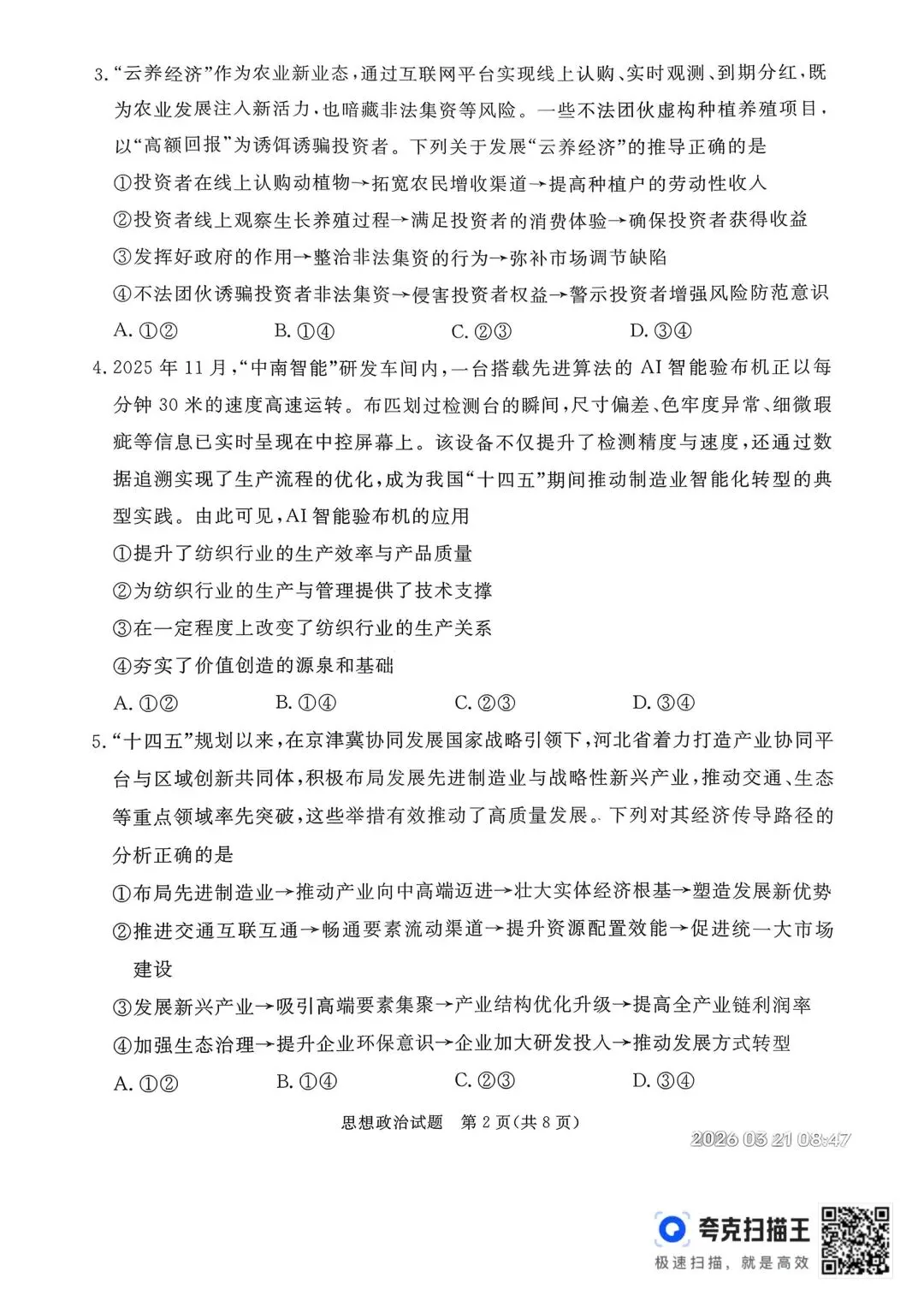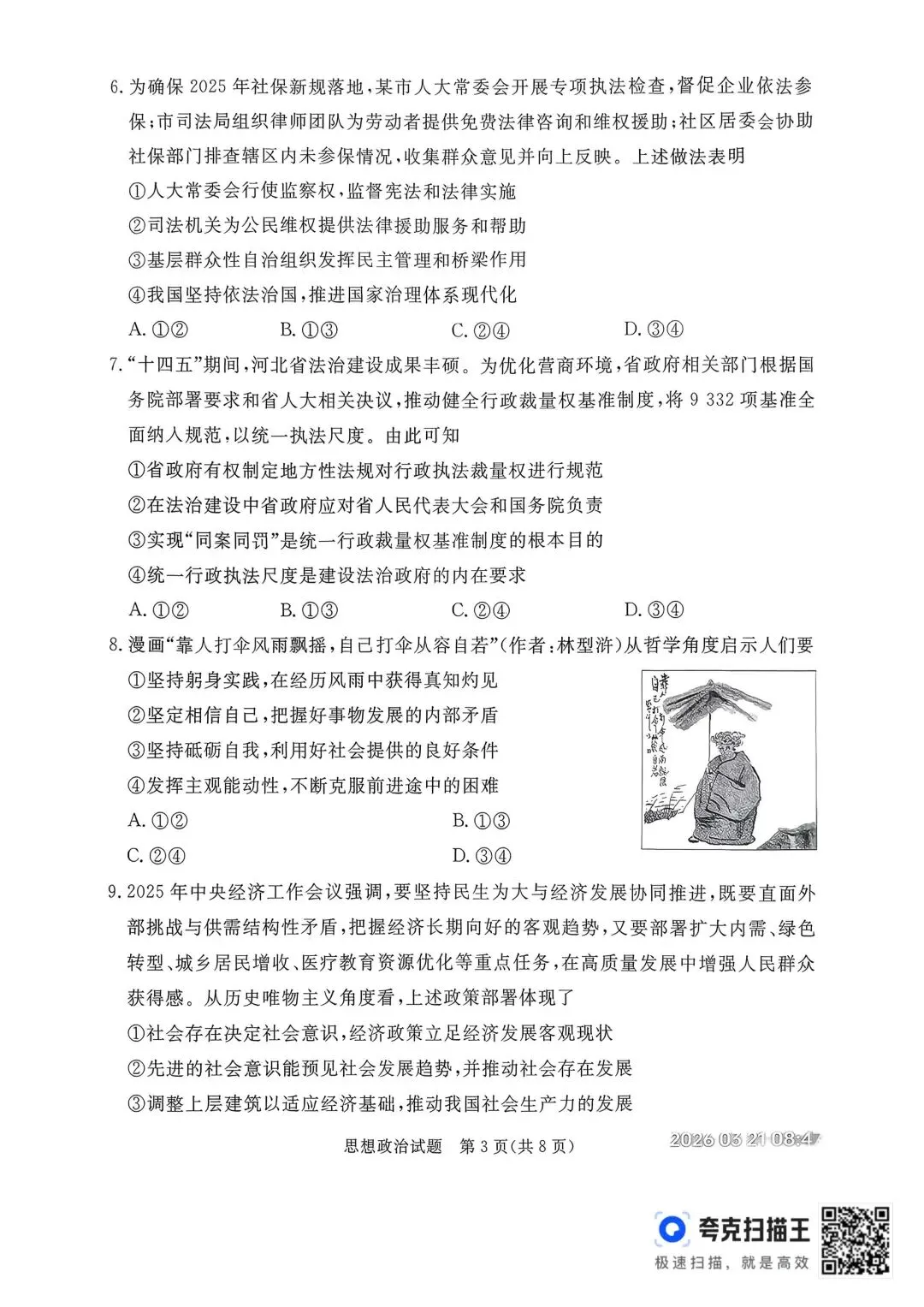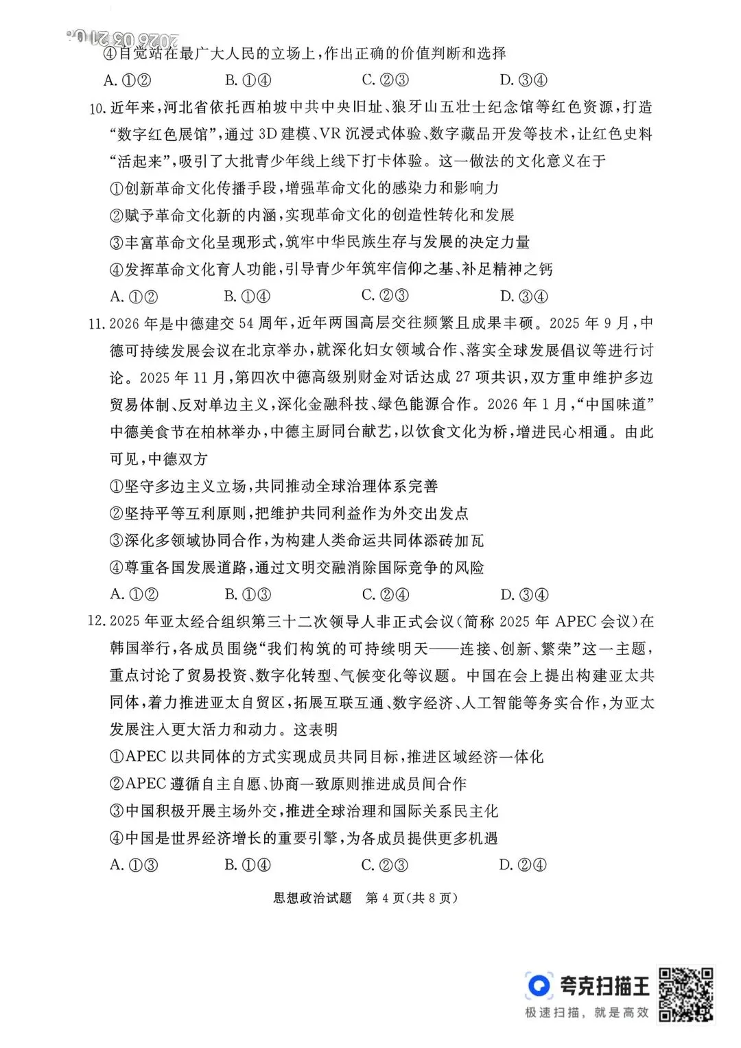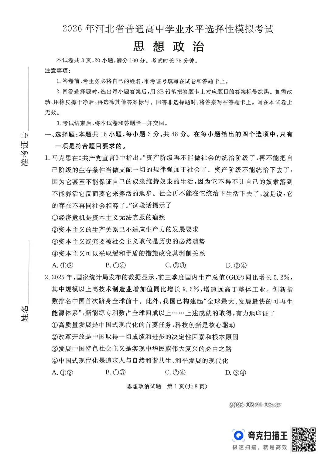 >【试卷】河北省2026年张家口市一模考试政治试卷
