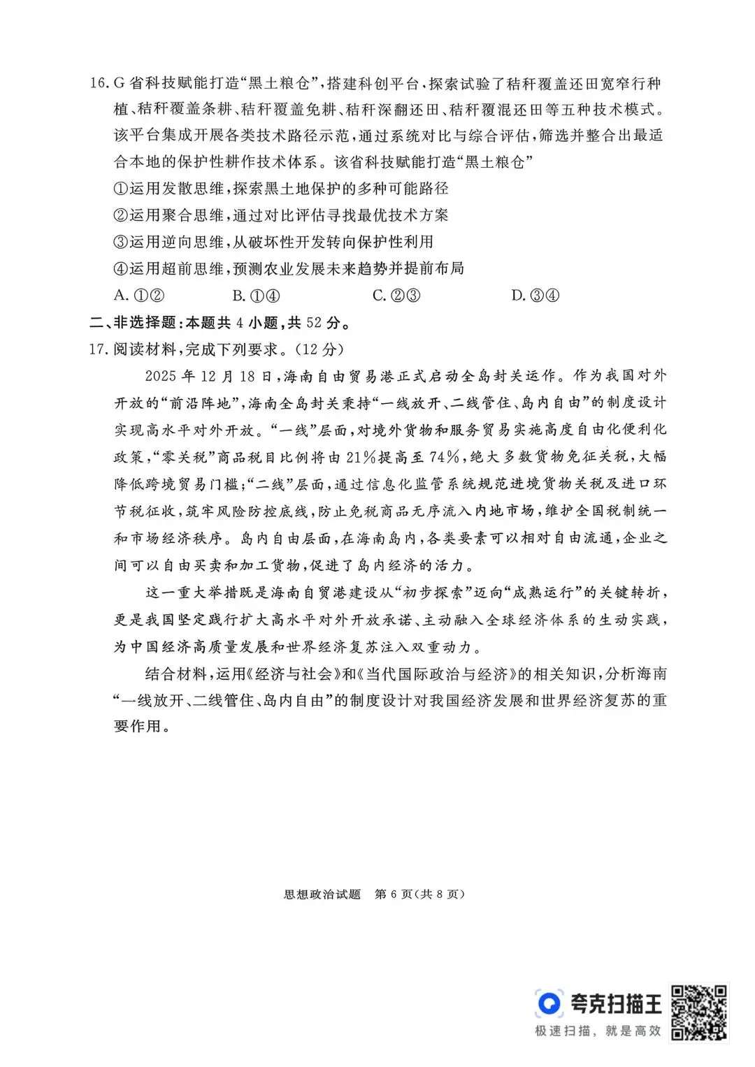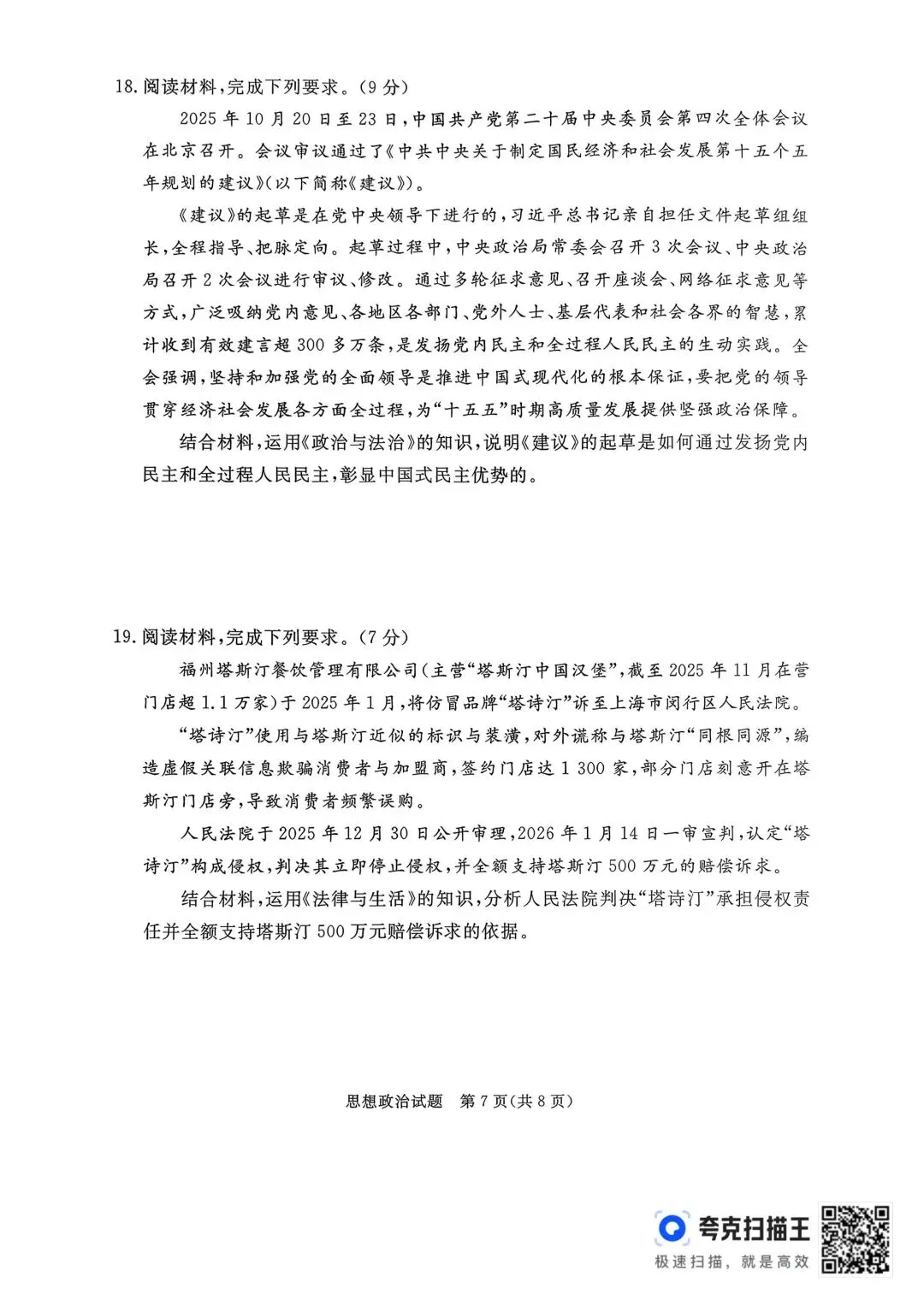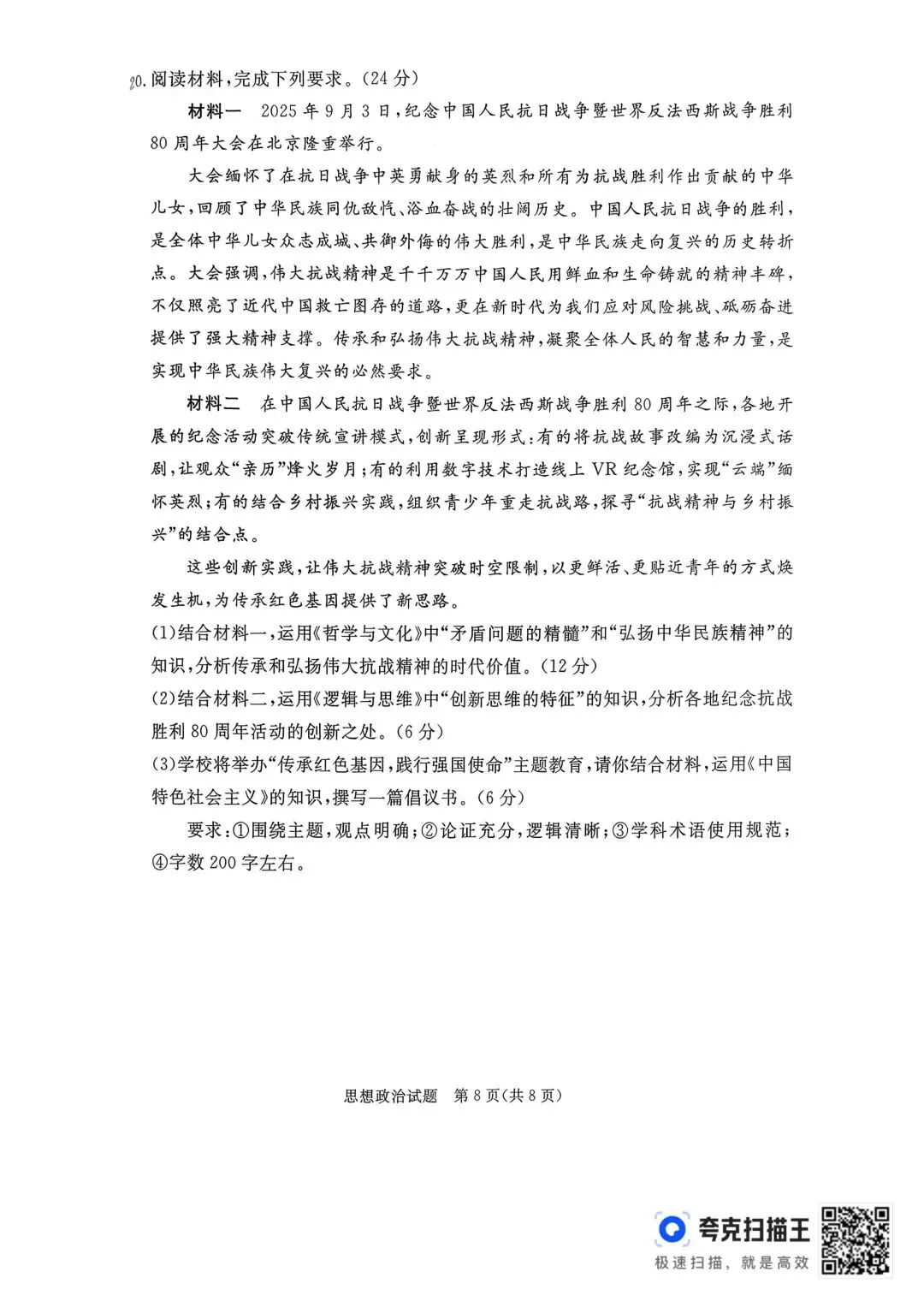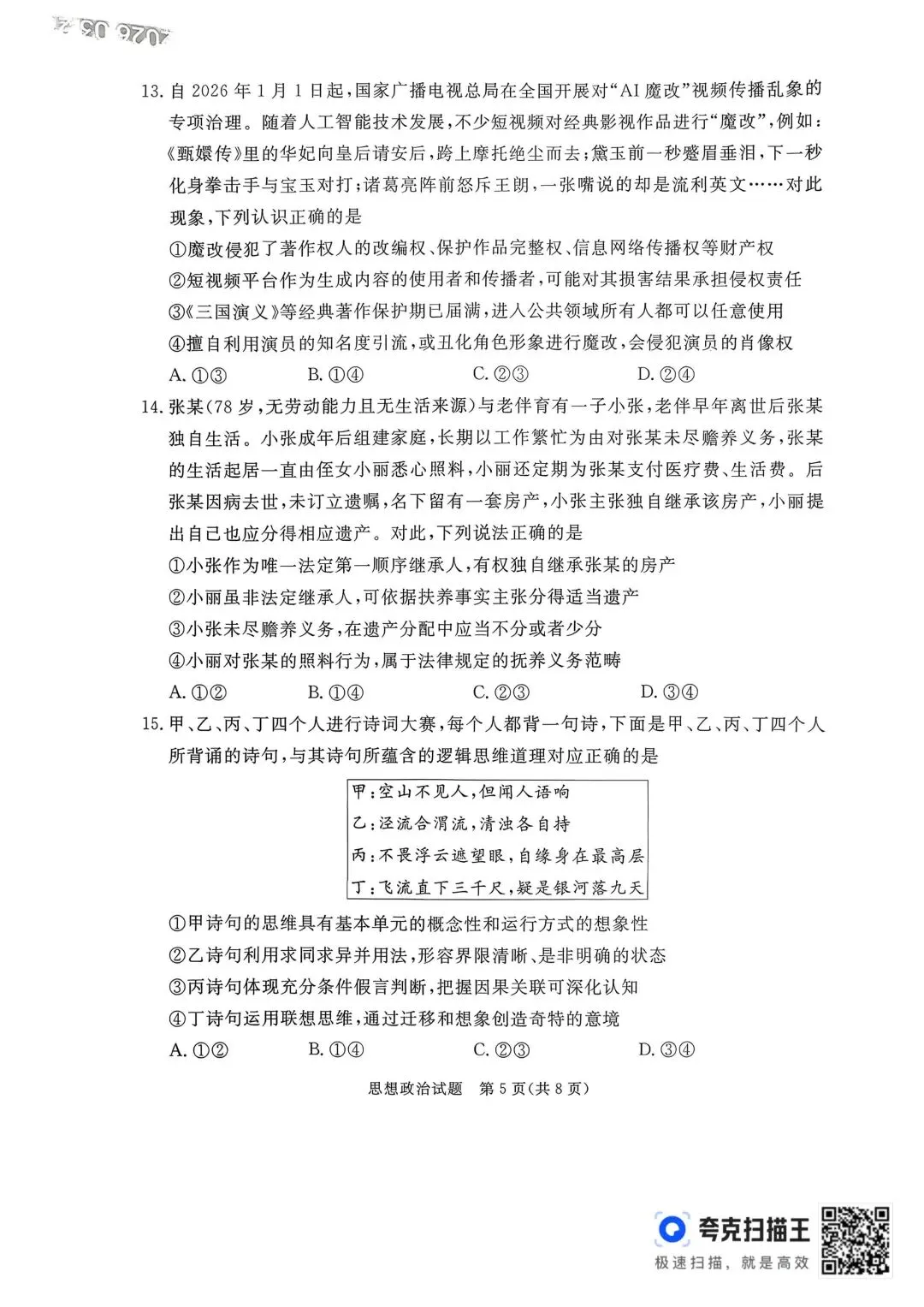>【试卷】河北省2026年张家口市一模考试政治试卷
