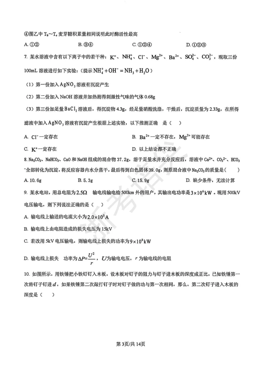 @2026年铁一陆港3模试卷(原卷版)