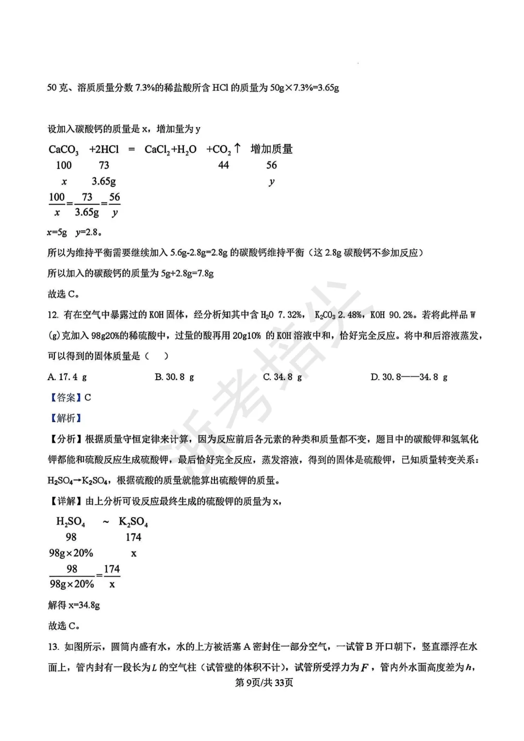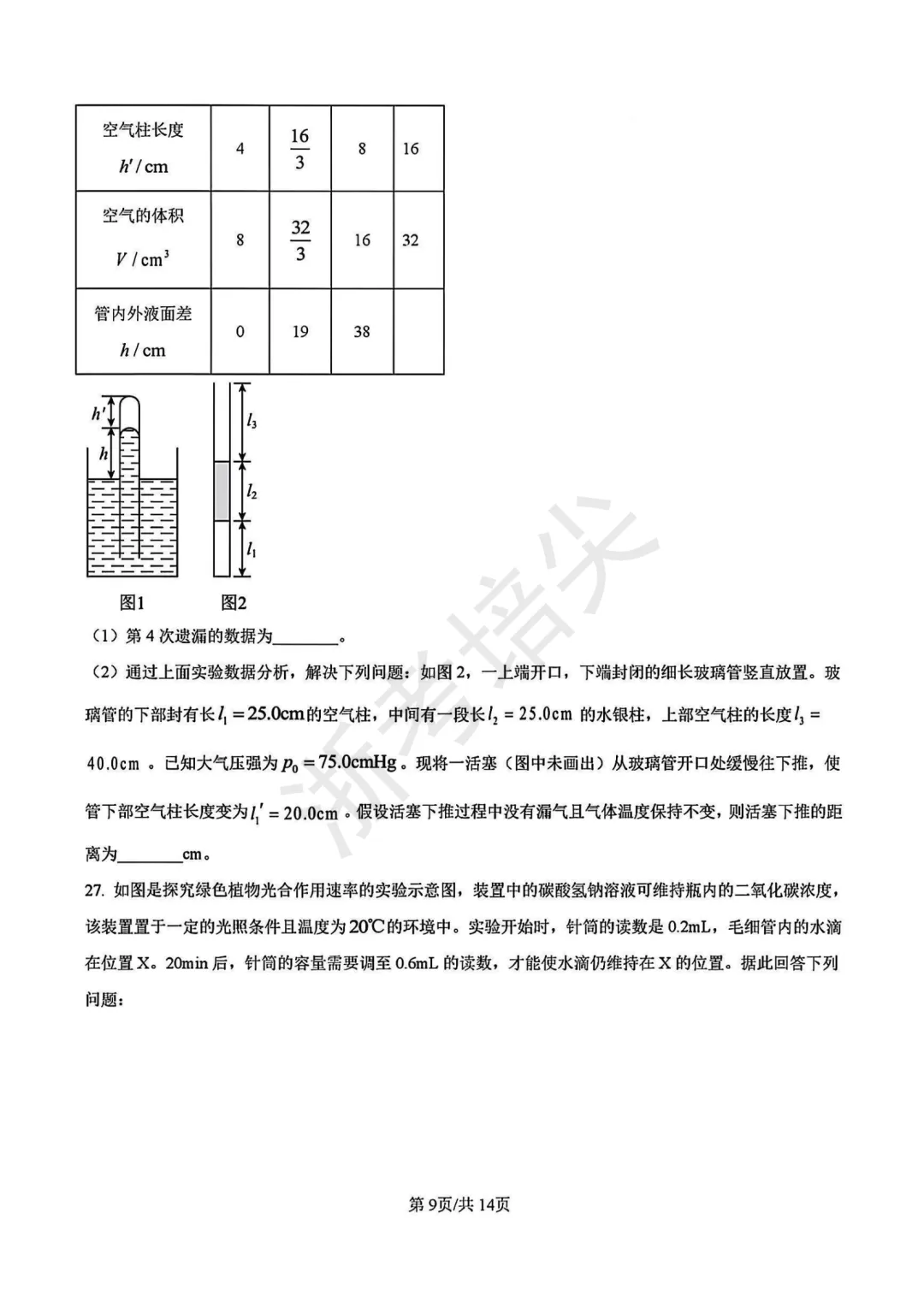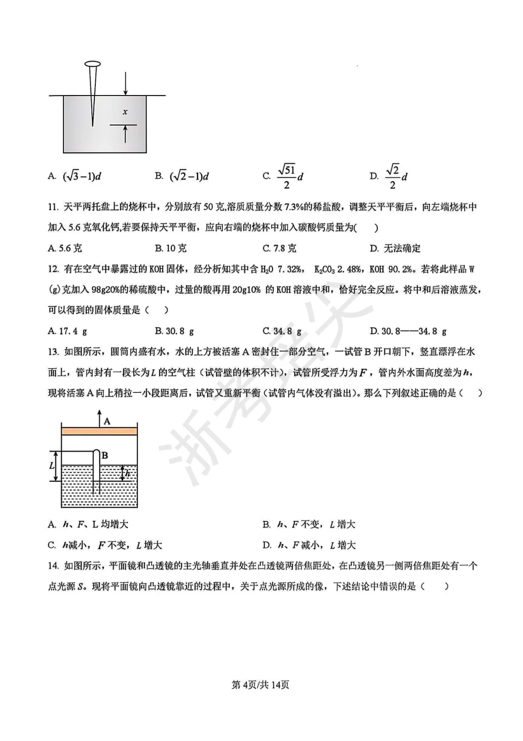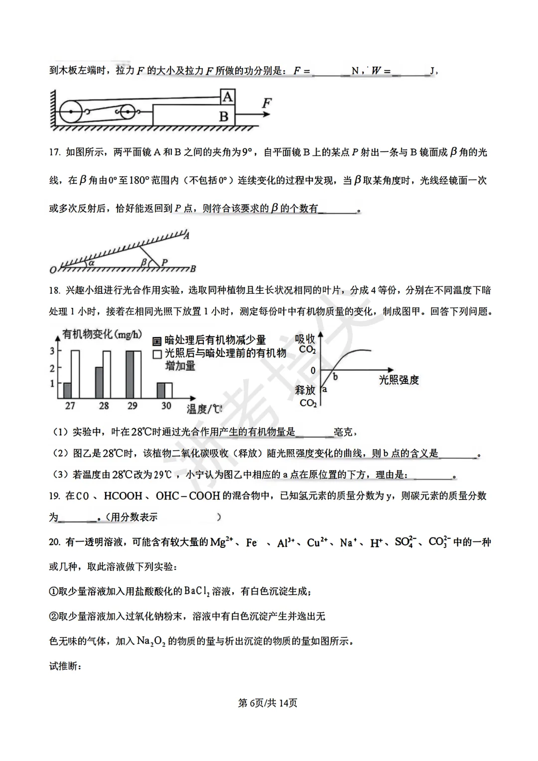 >竞赛|浙江省九年级科学竞赛试卷(含答案解析)