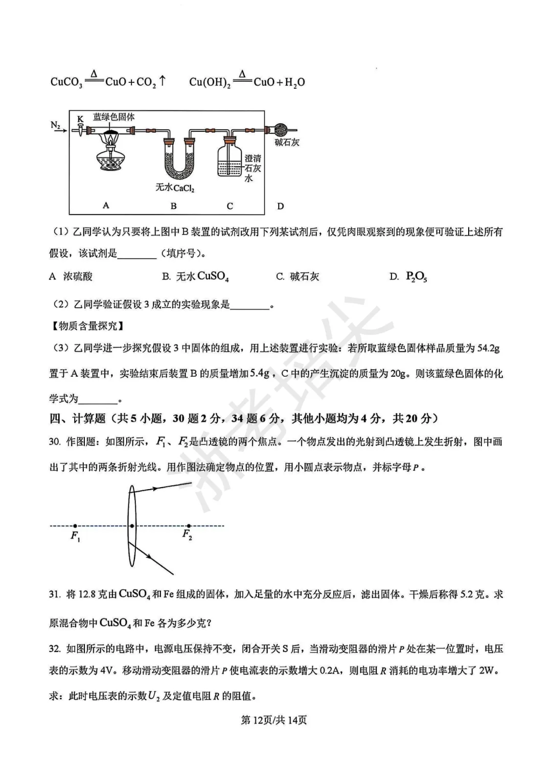 2026年石家庄市裕华区一模物理试卷(含答案,可下载打印)