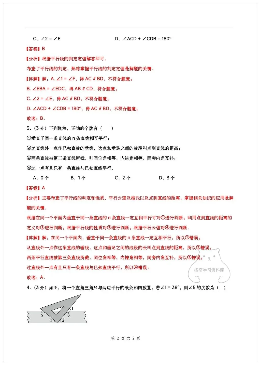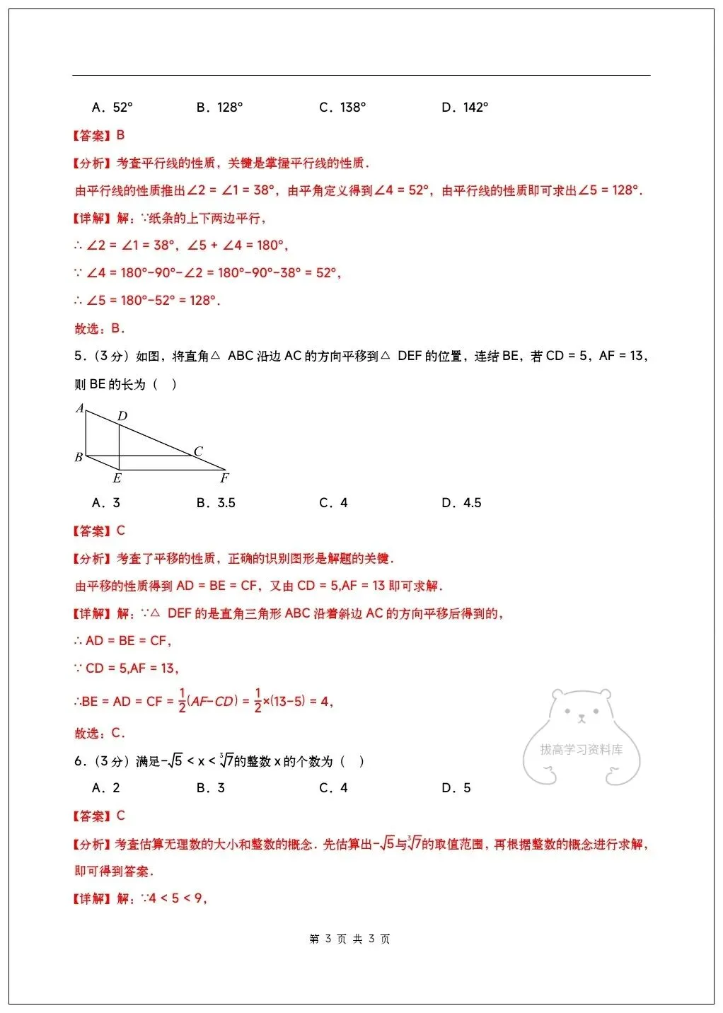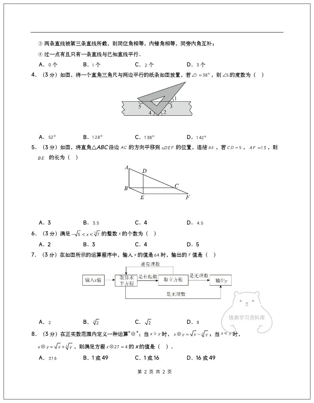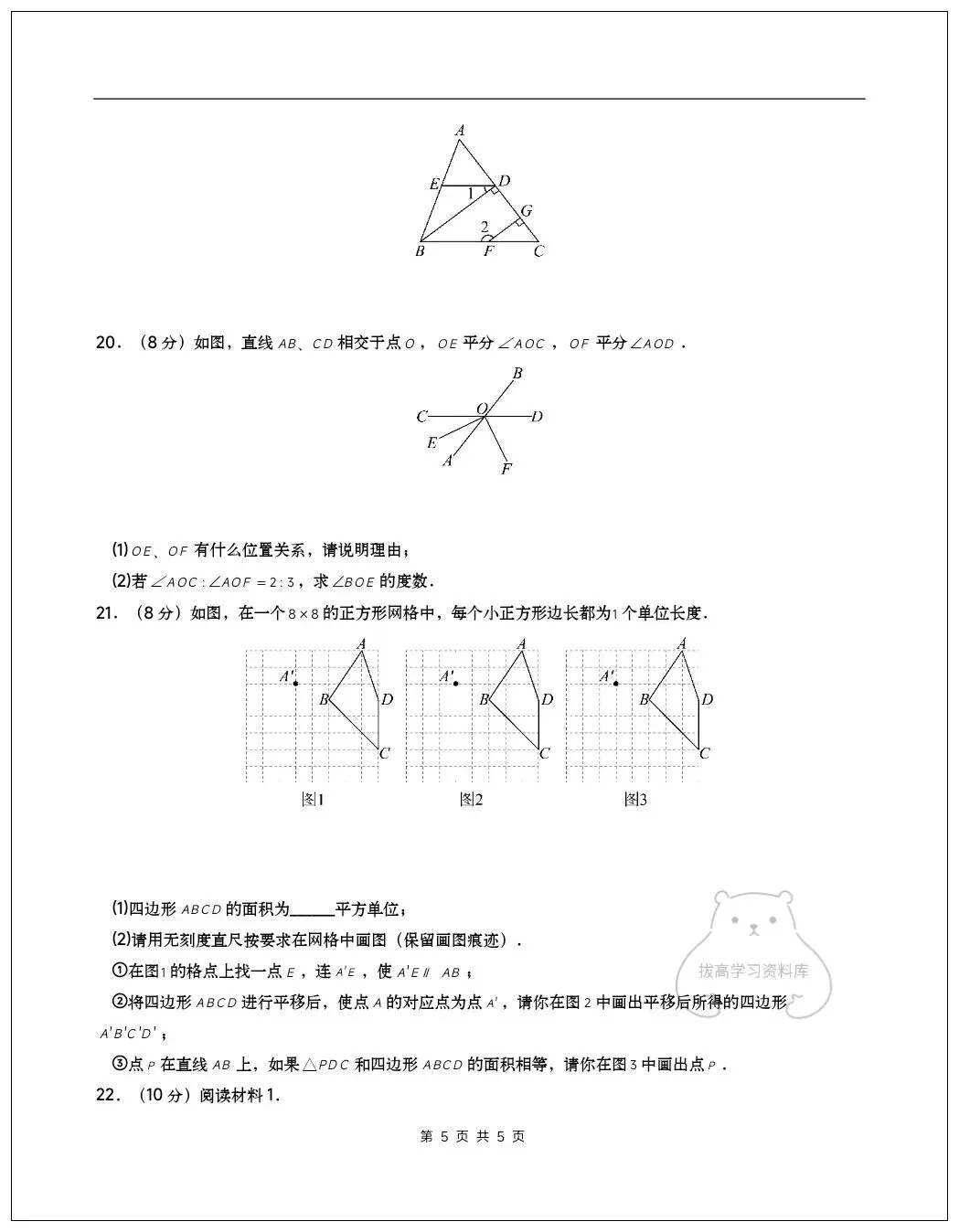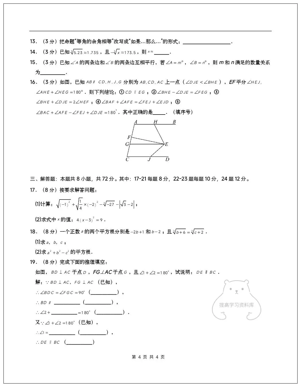 2026七年级数学下学期第一次月考试卷(含答案)共10套可打印!