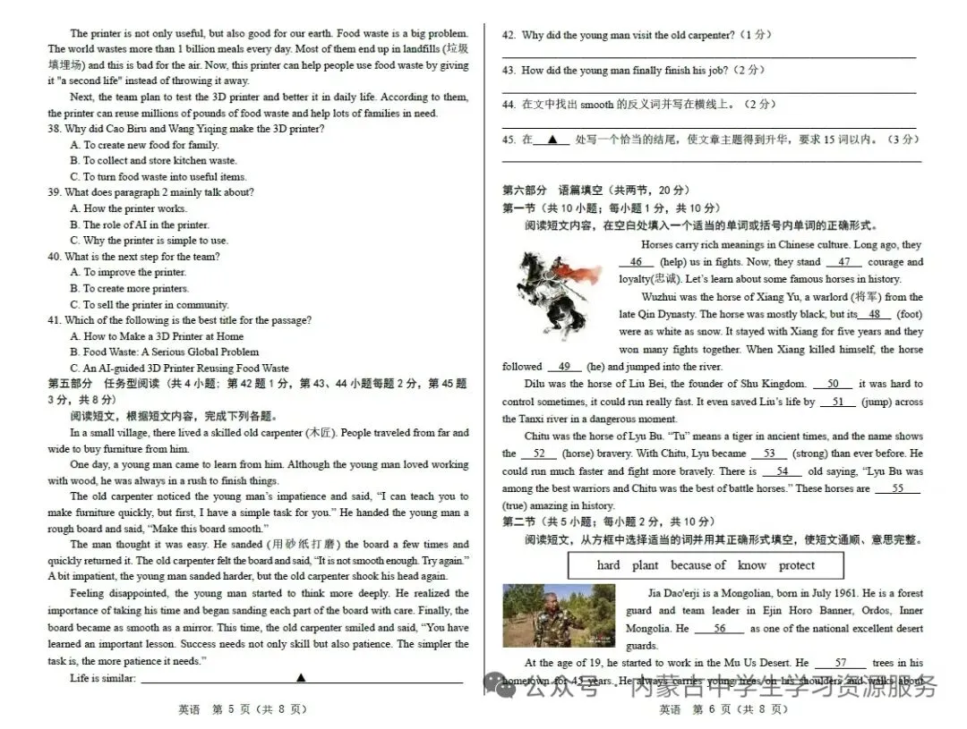 >2026年鄂尔多斯市中考一模英语试卷(含答案)