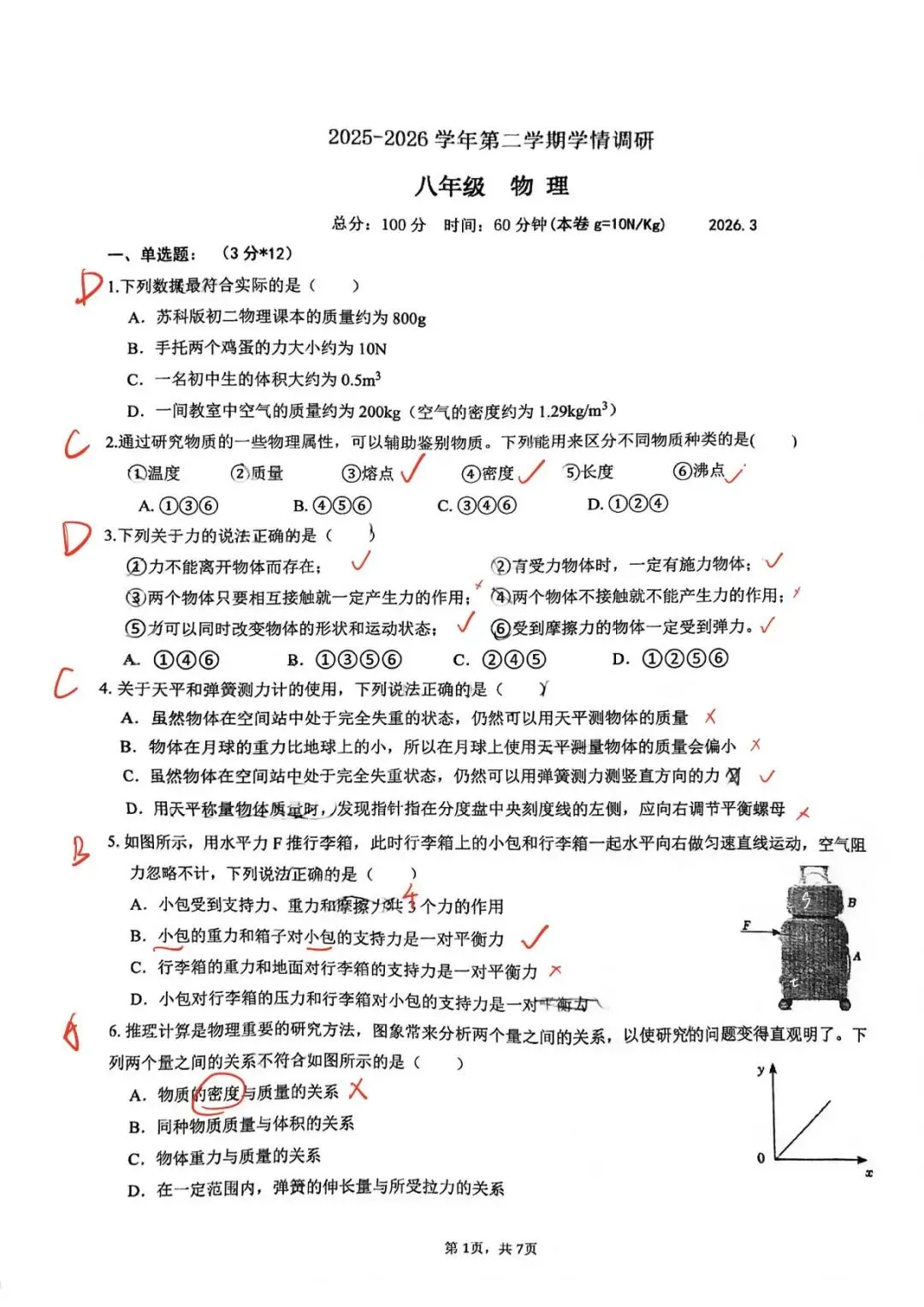 ⬆️【求真】刚考的26春八下第一次月考的试卷和答案
