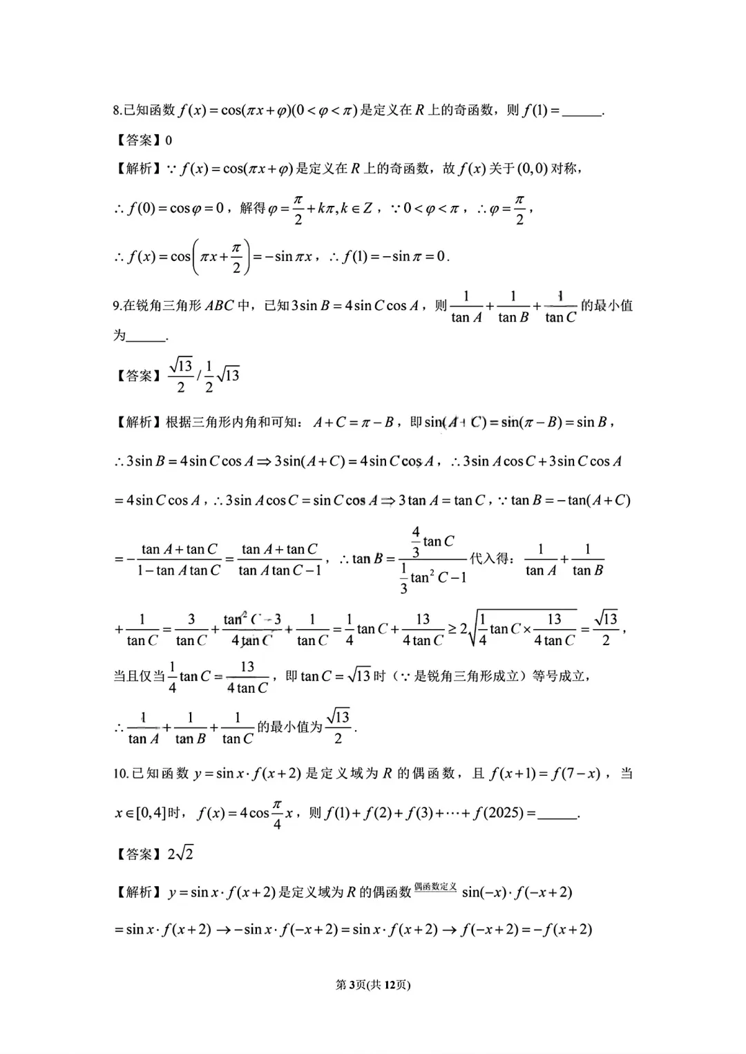 >上海市建平中学高一数学周末数学试卷及答案(2026.3)