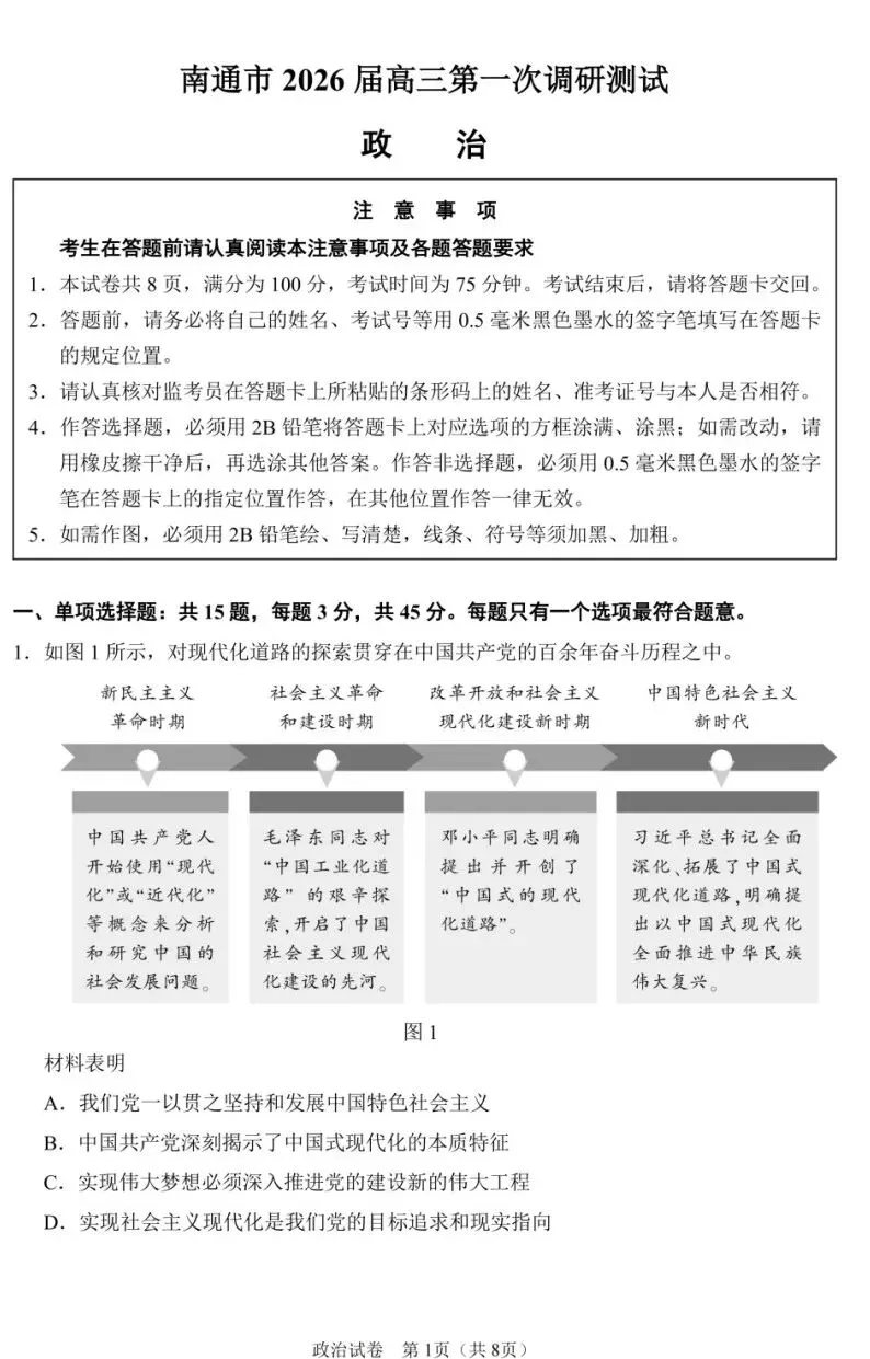百获小编整理了2026南通二模全科试卷+答案,一起来看看吧!