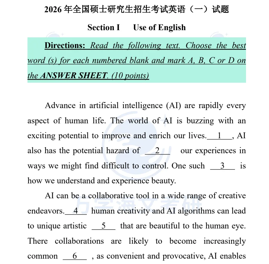 1998-2026年考研英语一真题及答案分享