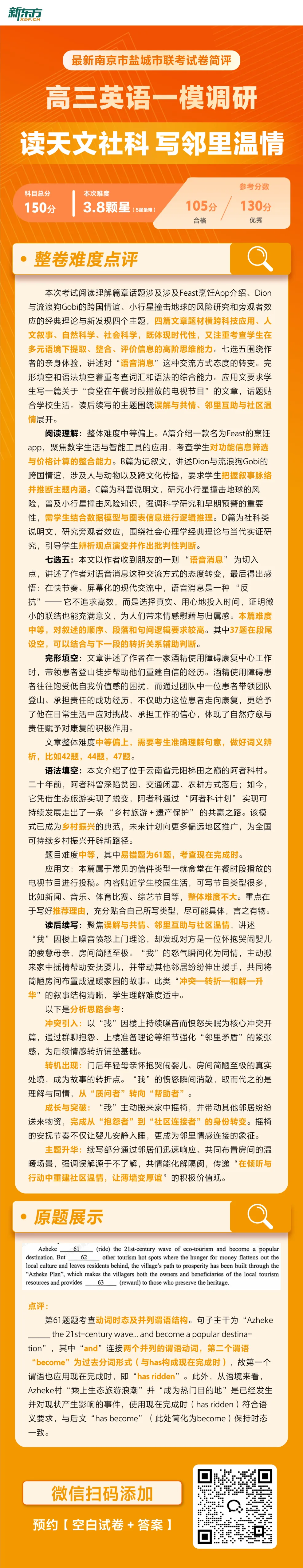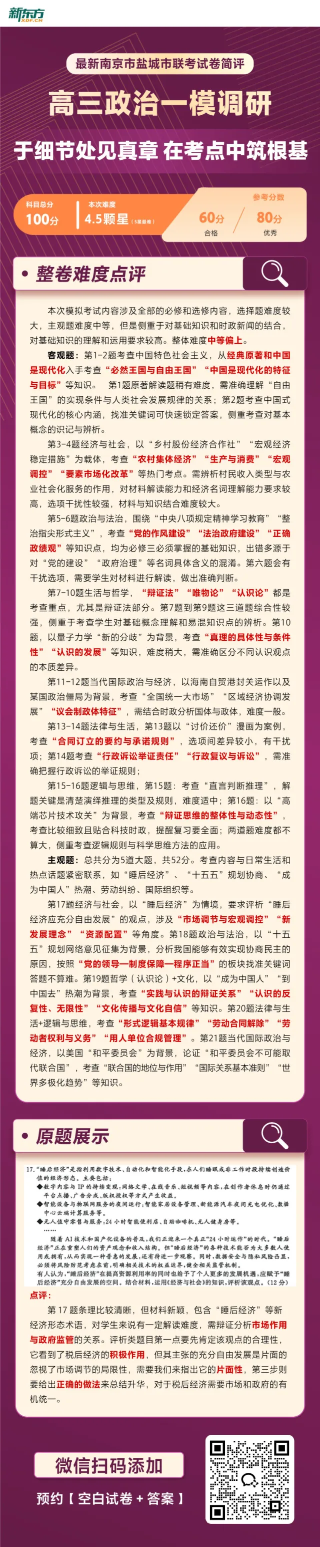 刚刚,南京盐城高三一模考试结束,各科试卷及解析已经出炉,整体题型接轨往年高考,难度适中,其中政治难度较大,大家感觉如何?另外,需要全科试卷及答案可以添加老师免费领取⬇️