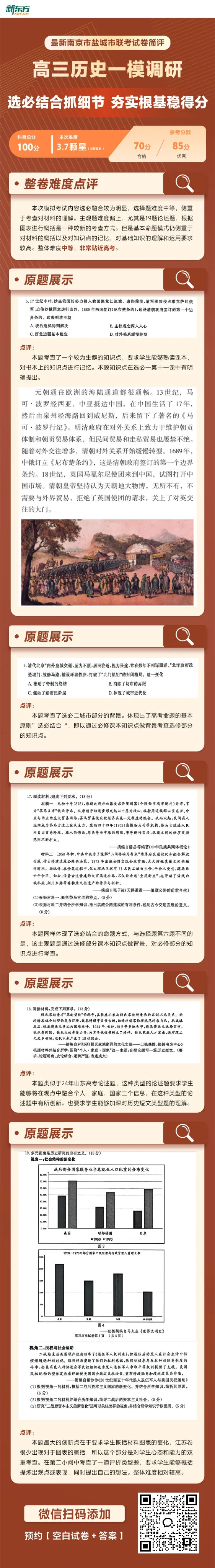 本次模拟考试内容选必融合较为明显,选择题难度中等,侧重于考查对材料的理解。主观题难度偏上,尤其是19题论述题,根据图表进行概括是一种较新的考查方式。但是基本命题模式仍侧重于对材料的概括以及对知识点的记忆,对基础知识的理解和运用要求较高。整体难度中等,非常贴近高考。
