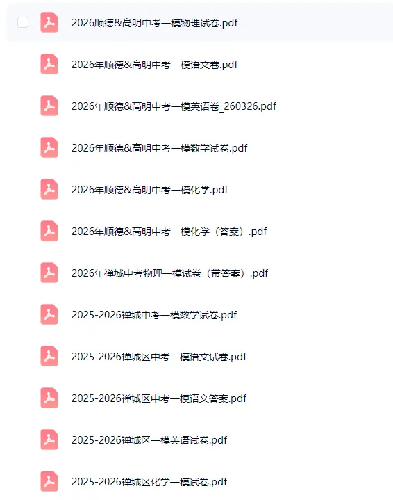 目前禅城、三水、顺德、高明四区一模已经考完,试卷汇总好了。试卷和答案已上传至网盘,如需电子版试卷,请关注公众号静敏聊升学,在公众号消息栏回复:2026年佛山四区一模试卷。