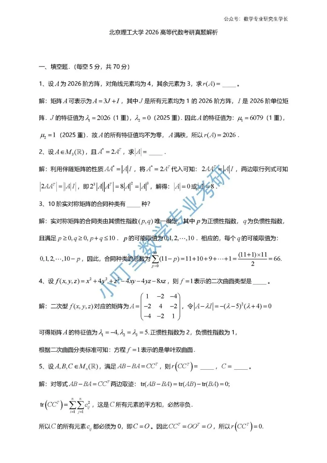 北京理工大学2026 高等代数考研真题解析