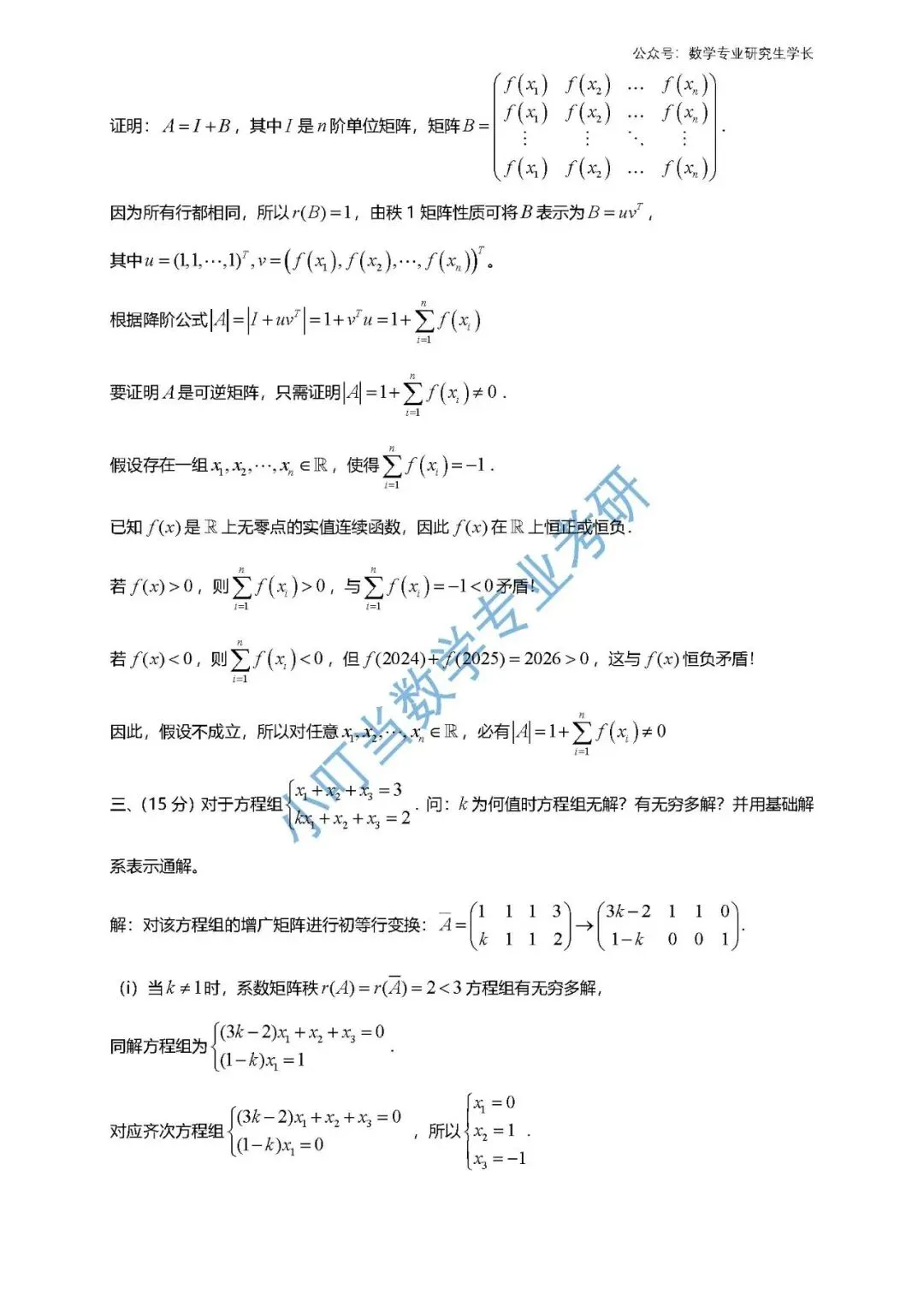>北京理工大学2026 高等代数考研真题解析