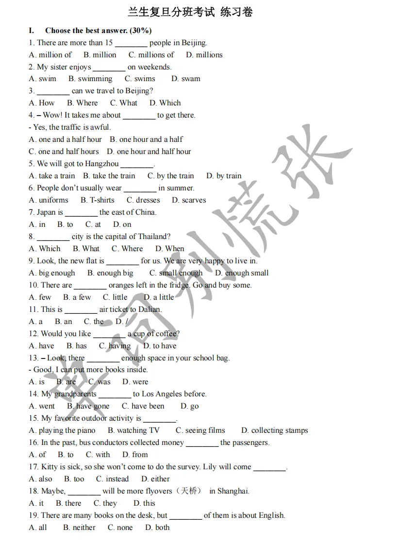 >四校试卷-兰生复旦【初中考试刷题】