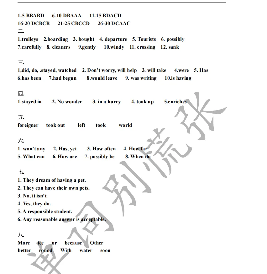四校试卷-兰生复旦【初中考试刷题】