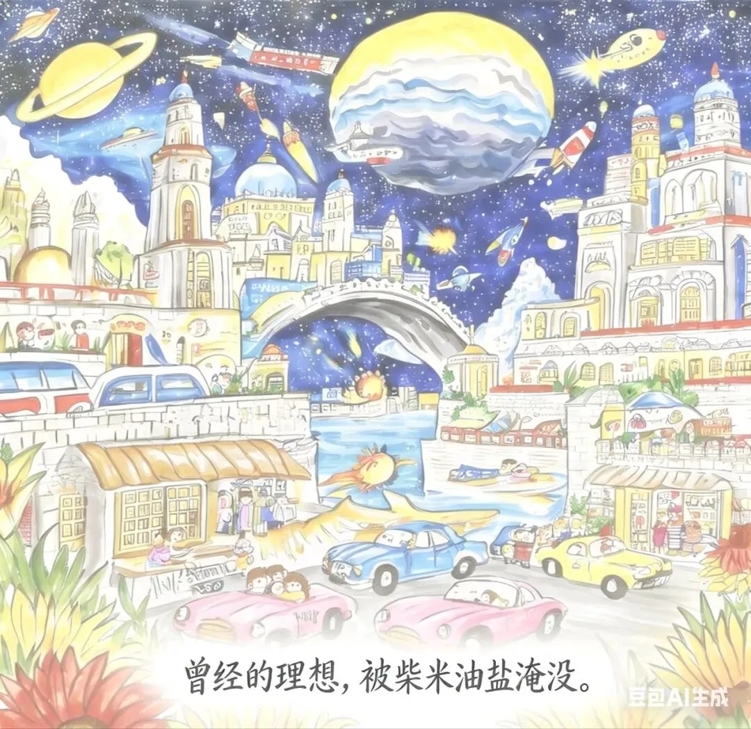我们也从曾经意气风发、心怀浪漫的少年,彻底变成了满面风尘、满眼焦虑的中年人。曾经挂在嘴边的理想,被柴米油盐的琐碎彻底淹没;曾经心心念念的热爱,被残酷的现实压力深深尘封。我们开始一遍遍叮嘱孩子,语气里满是无奈与急迫:“别学那些没用的东西,选个好就业、能赚钱的专业”“别贪玩,一定要努力,不然以后就会被人踩在脚下,没有活路”。