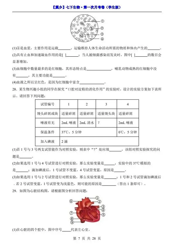 新26春七年级下册冀少版生物第一次月考试卷(含答案+答题卡)完整电子版可打印!家长关注收藏,让孩子用高效的方法学透知识点,用优质的资源为学习赋能,在成长的赛道上稳步前行,轻松提分!