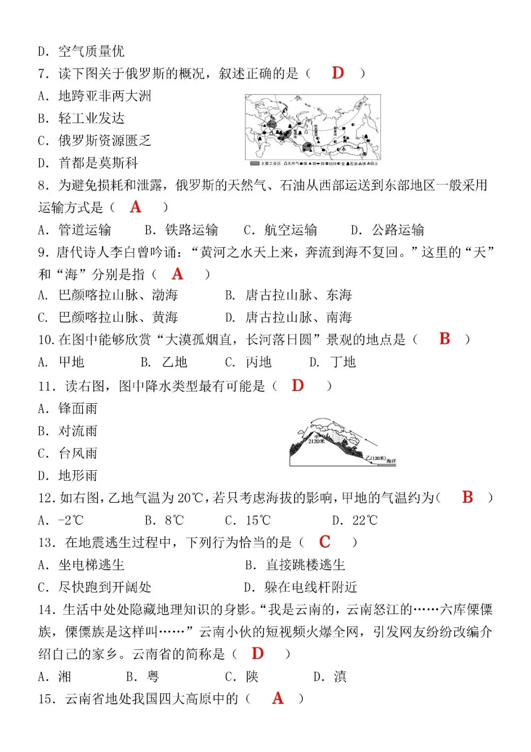 >2026初中地理会考押题训练试卷(含答案),电子版可打印!