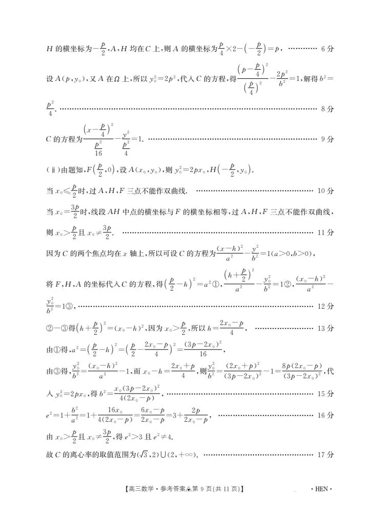 天一湖南26届高三3月大联考数学试卷及答案
