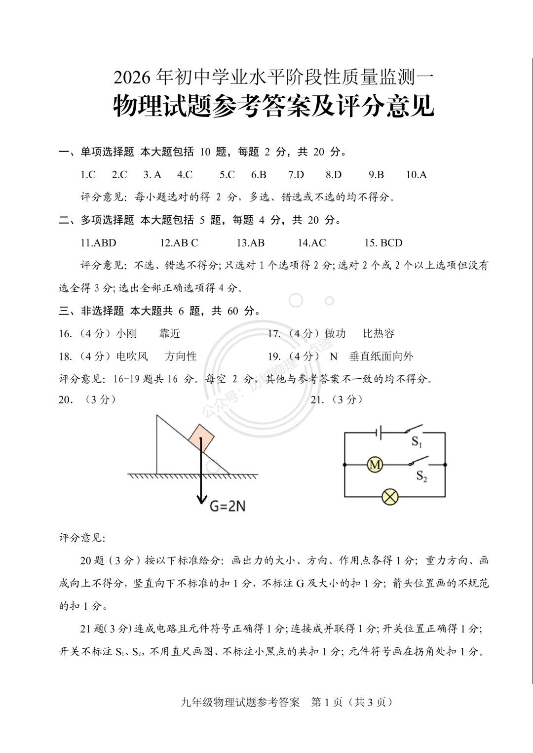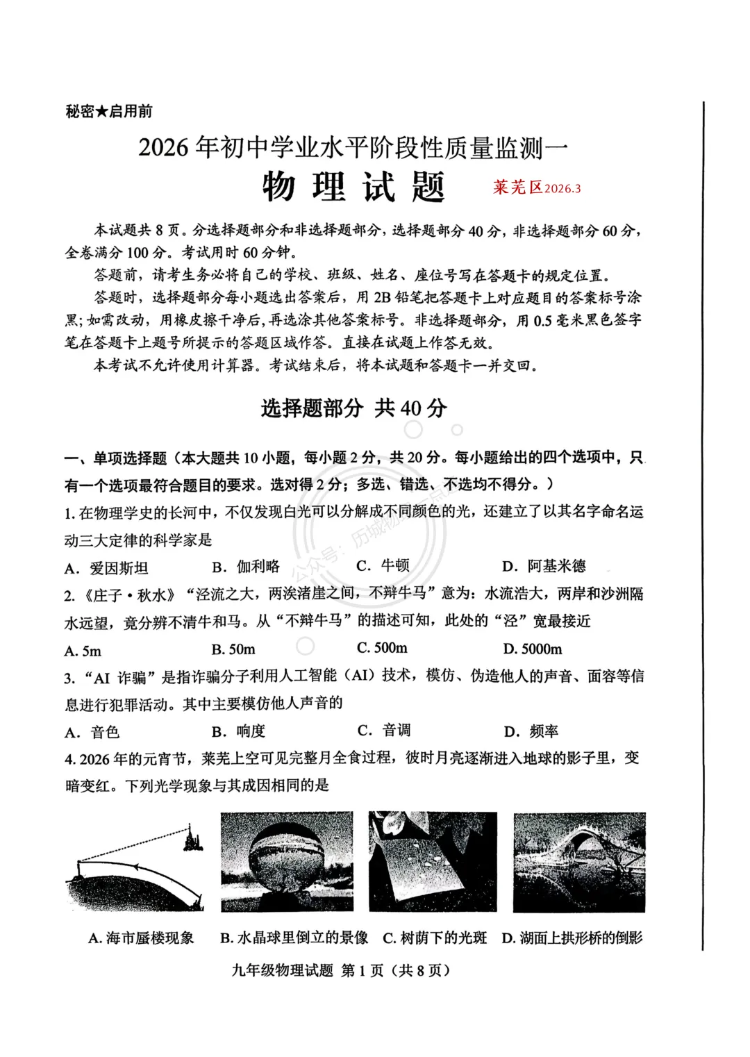 >【中考】2026.3济南莱芜区一模物理试卷及答案!