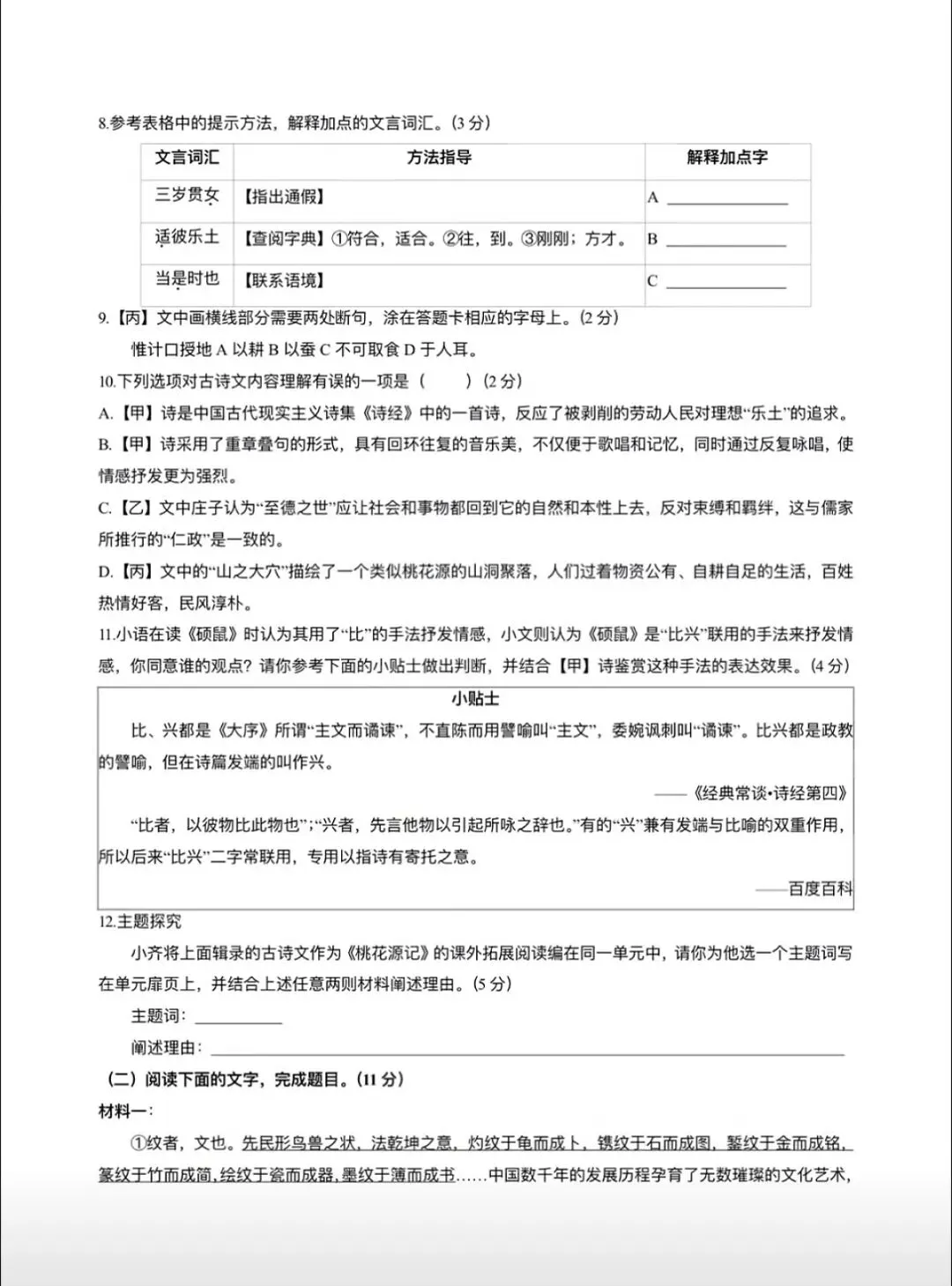 >2025——2026八下语文第一次月考试卷