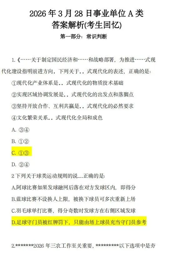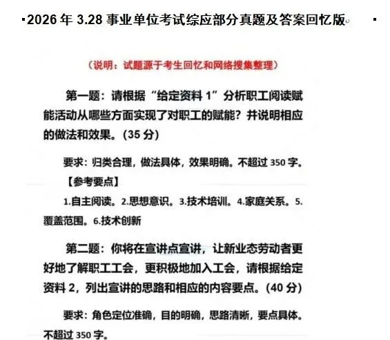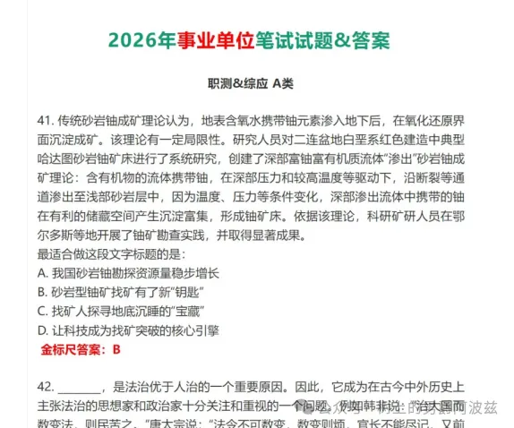 3.28事业单位联考真题,2026年328事业单位联考综合管理类(A类)刚落下帷幕,趁着记忆犹新,一起来对答案叭~根据部分学员回忆我们整理了本次考试的试题和答案(机构完整版)https://pan.quark.cn/s/69efddd6ad6e