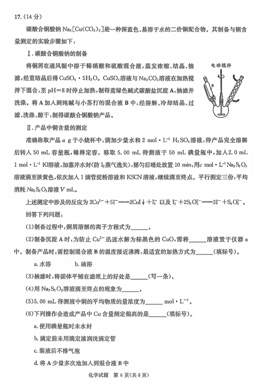 1.2026届广东广州市高三下学期高中毕业班综合测试化学试题2.2026届广东中山市高三下学期模拟测试(一)化学试题3.2026届江西吉安市高三下学期模拟考试化学试题4.2026年辽宁葫芦岛市高三年级第一次模拟考试化学试卷5.安徽安庆市2026年高三下学期模拟考试(二模)化学试题6.甘肃陇南市成县第一中学、第二中学、成州中学2025-2026学年下学期高三二诊模拟考试化学试卷7.广东东莞市2025-2026学年下学期高三年级第一次模拟考试化学试卷8.贵州贵阳市雅礼高级中学2026届高三下学期3月考试化学试卷9.湖北荆州市2026届高三下学期3月调研考试化学试题10.江苏南京市、盐城市2026届高三下学期第一次模拟考试化学试题11.江苏南京市中华中学2026届高三下学期适应性练习化学试题12.江苏苏锡常镇四市2025-2026学年度下学期高三教学情况调研(一)化学试卷13.山东枣庄市2026届下学期高三模拟考试化学试题14.山西太原市2026届下学期高三年级模拟考试(一)化学试题15.四川成都市第七中学2026届高三下学期二诊模拟考试化学试卷16.四川德阳市高中2026届高三下学期第二次诊断考试化学试卷17.安徽芜湖市无为中学等校2026届下学期高三3月考试(三)化学试卷18.广东江门市2026年高三下学期模拟考试化学试题19.广东深圳市高级中学高中园2026届下学期高三年级第二阶段第一次考试化学试卷20.湖北恩施州2026届下学期高三第二次质量监测考试化学试卷21.湖北宜昌市2026届下学期高三3月调研考试化学试卷22.江西南昌市2026届下学期高三年级三月测试(一模)化学试题23.山西晋城市高平一中实验学校等校2026届高三下学期第一次模拟考试(一模)化学试题24.山西临汾市2026届下学期高三年级质量监控第一次模拟测试化学试卷25.四川成都市2025-2026学年下学期高三第二次模拟测试化学试卷【第二步】复制下载链接,然后打开「百度网盘APP」,即可保存、下载。通过网盘分享的文件:3月高三考试试卷