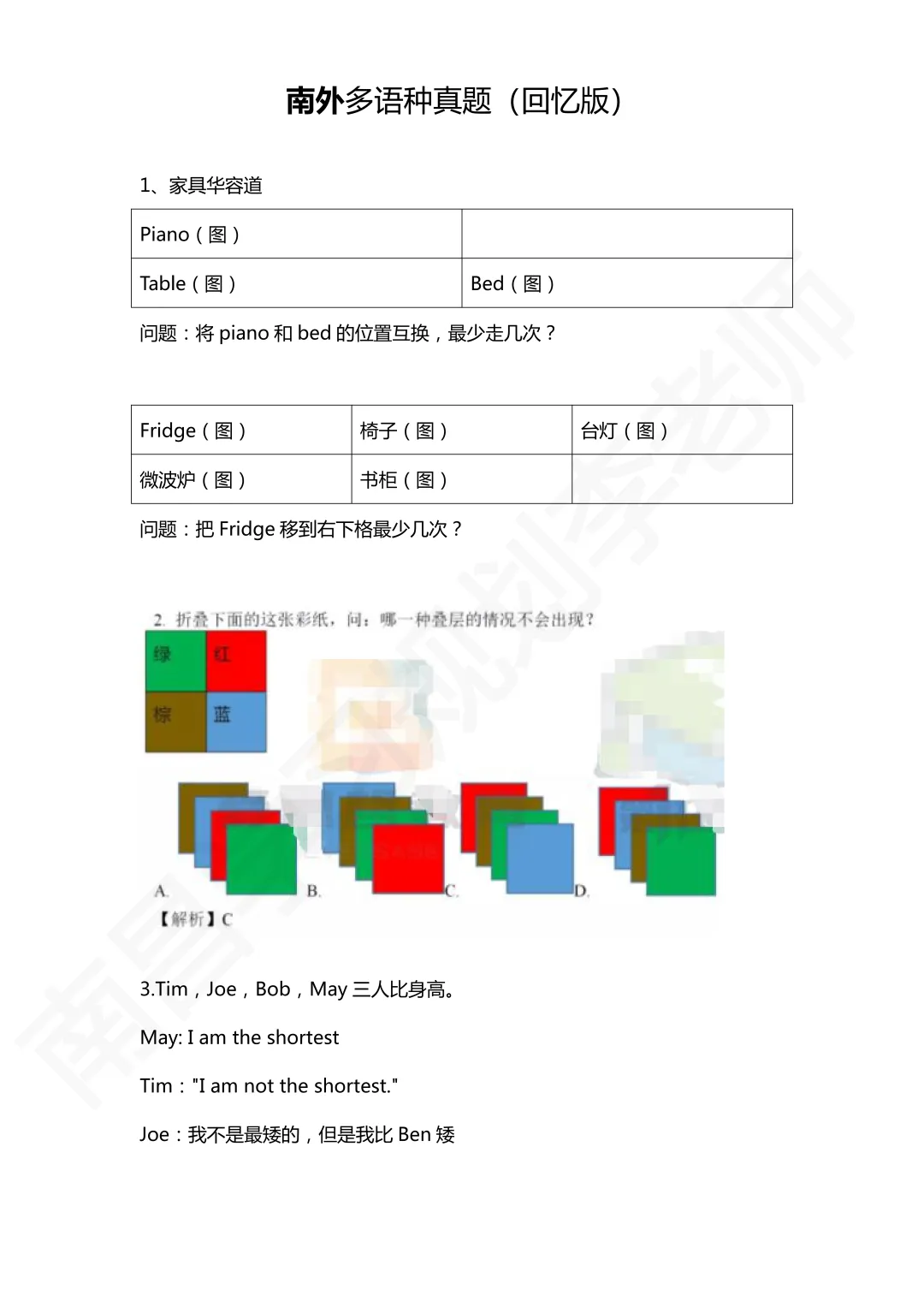 给大家整理了十几套南外多语种考试真题,试题均为考生回忆版,旨在给孩子们提供备考方向。仅供参考使用!