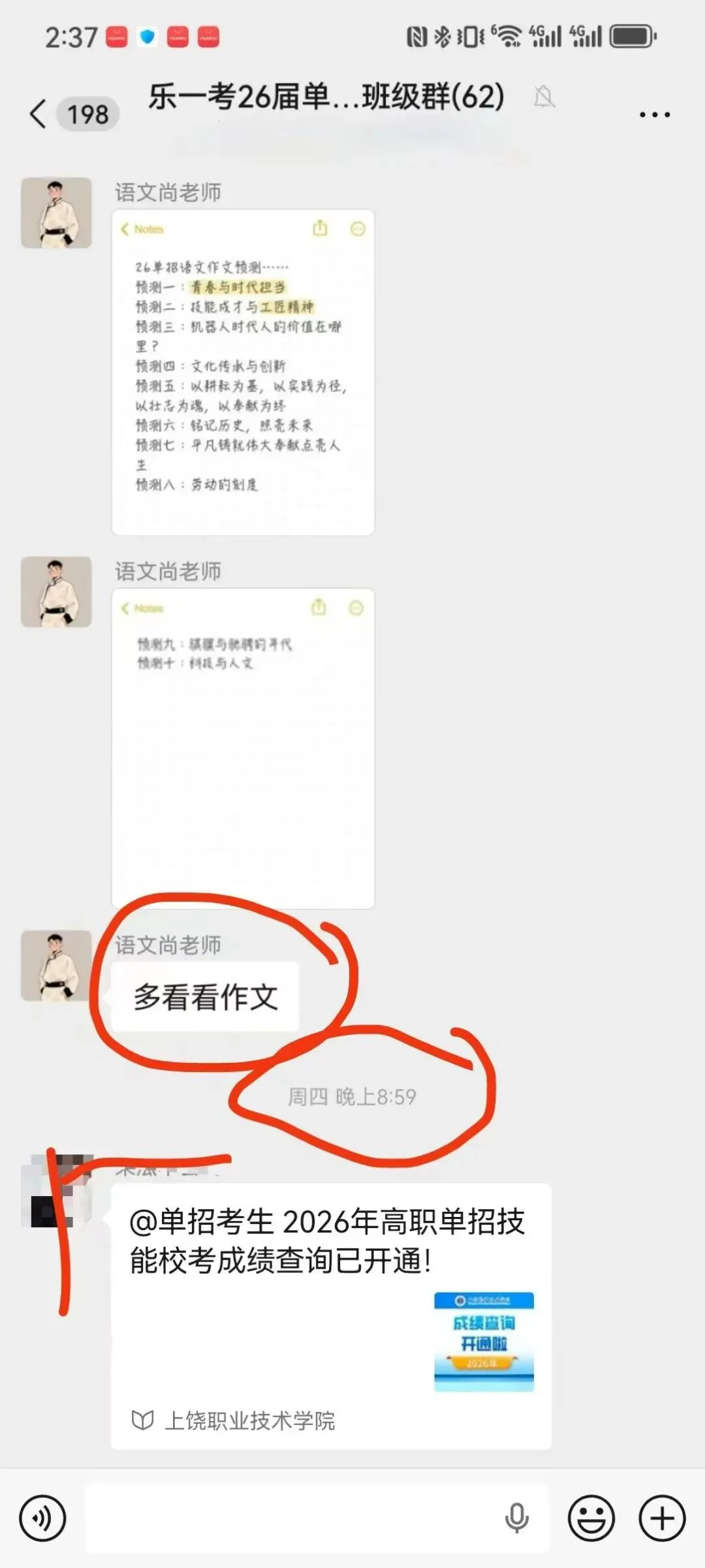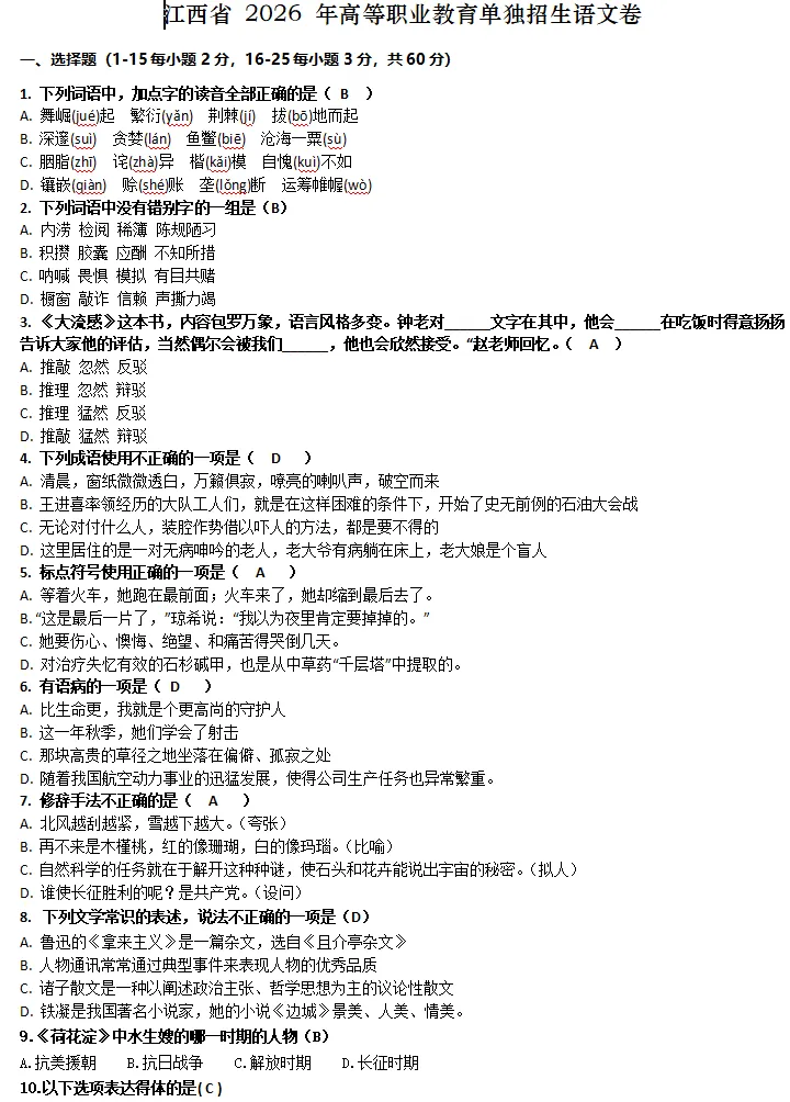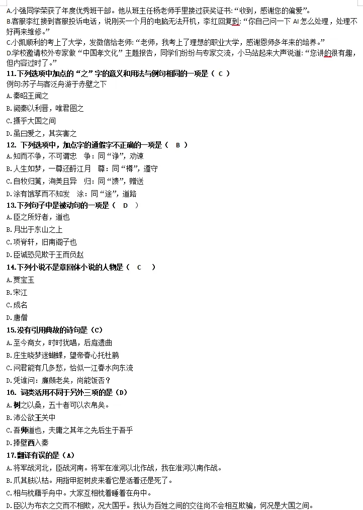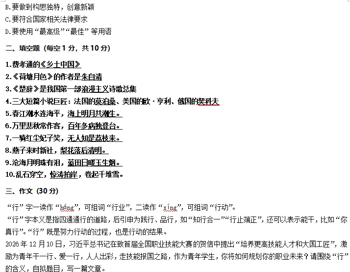 语文也考得比较简单,都是平时学的,和老师预估的情况差不多,单招文化统考必须照顾基础差的学生,今年高考报考人数减少,单招越来越回归单招十几年前设置它的原因。我们语文老师直接压中了单招作文原题,考前还让学生复习,这就是专业!!!!注:人为整理,如有错误望谅解!!!如需答案对分可联系老师!!!!内容如果对您有帮助,欢迎收藏转发分享!