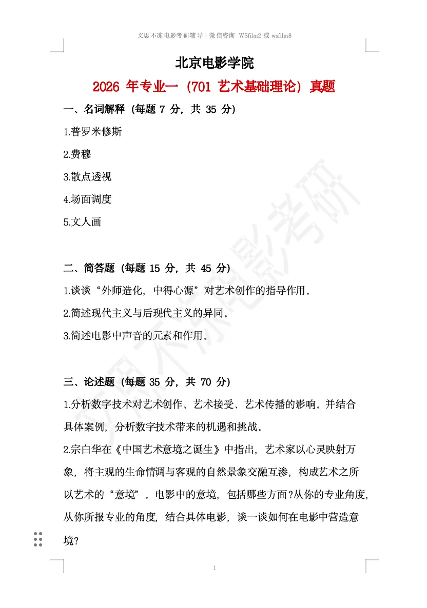 对于报考北京电影学院的考生而言,“艺术概论”(专一艺术基础理论)具有基础性与统摄性意义,是所有方向考生必须面对的核心科目。专一实行全校统一命题,不区分专业方向,因而在考试体系中具有高度的普遍性与筛选性。