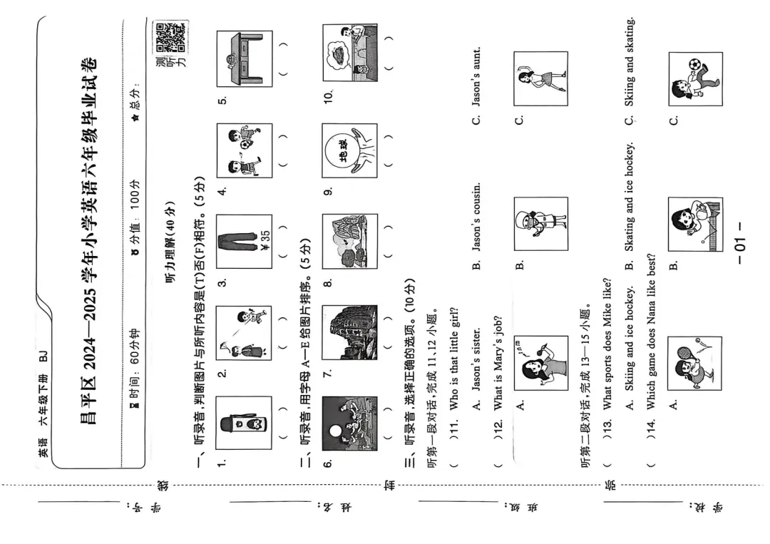 新教材六年级上册(北京版)英语期末素养评估卷共1套新教材六年级上册(北京版)英语小升初素养评估卷共1套新教材六年级上册(北京版)英语北京小升初真题卷共3套领取完整电子版: