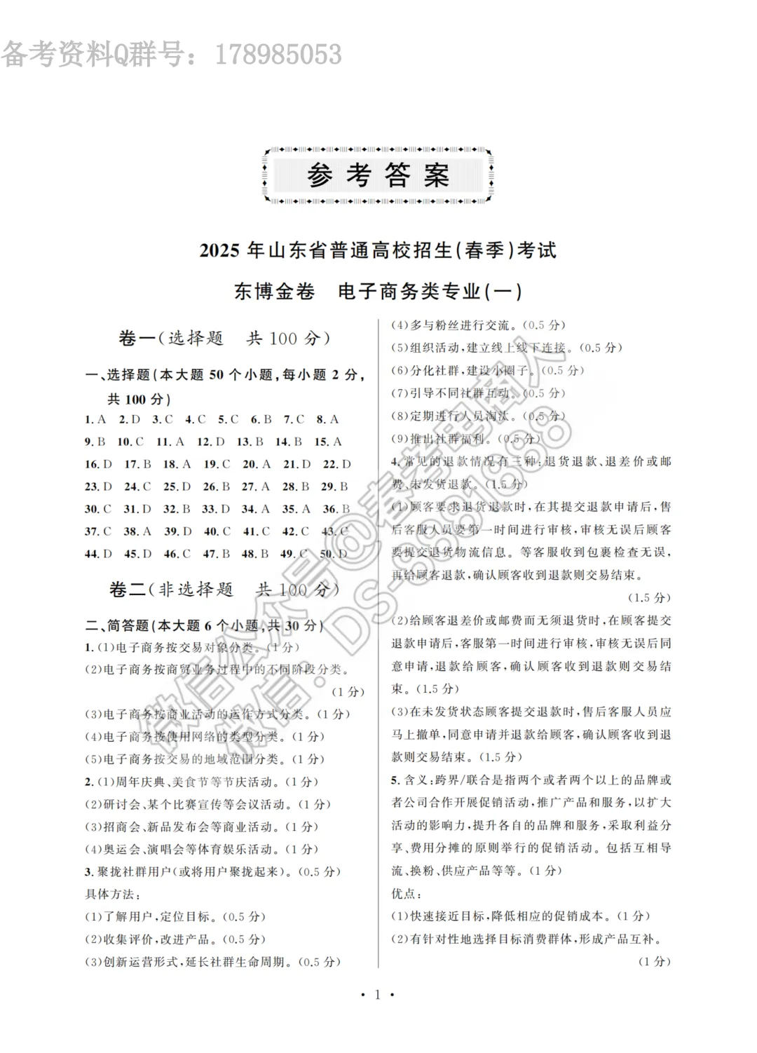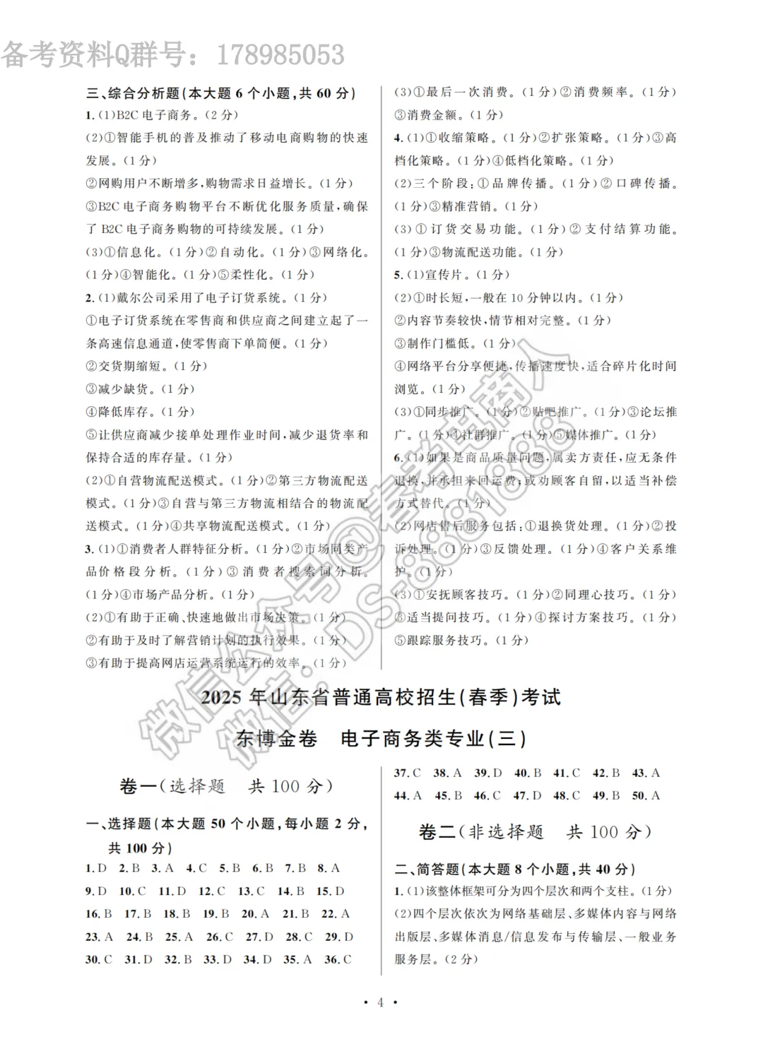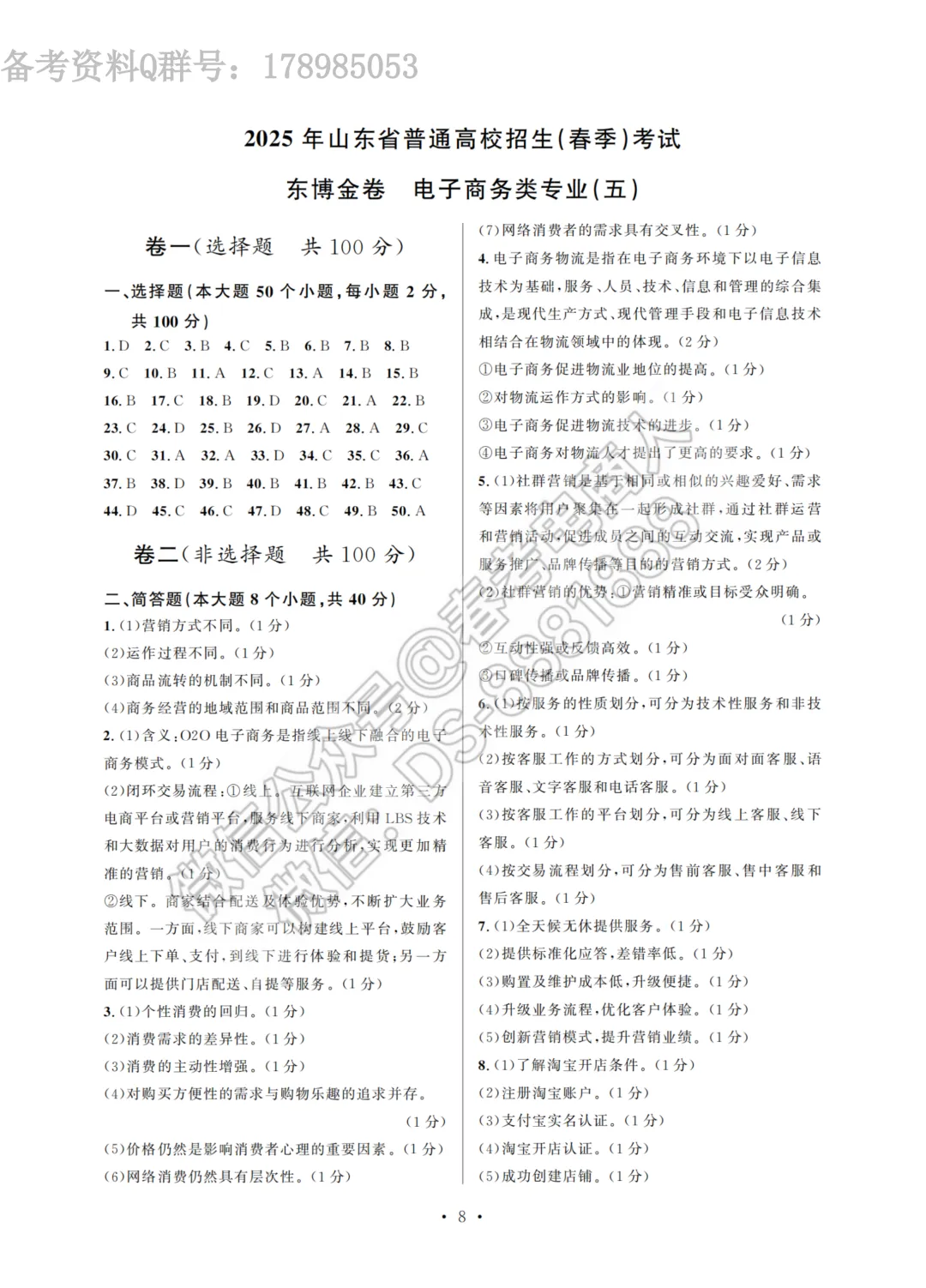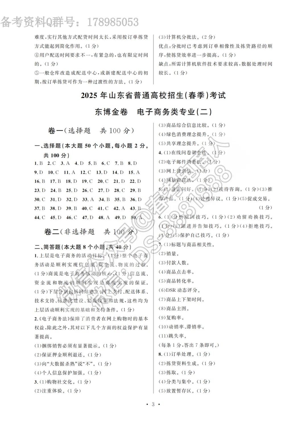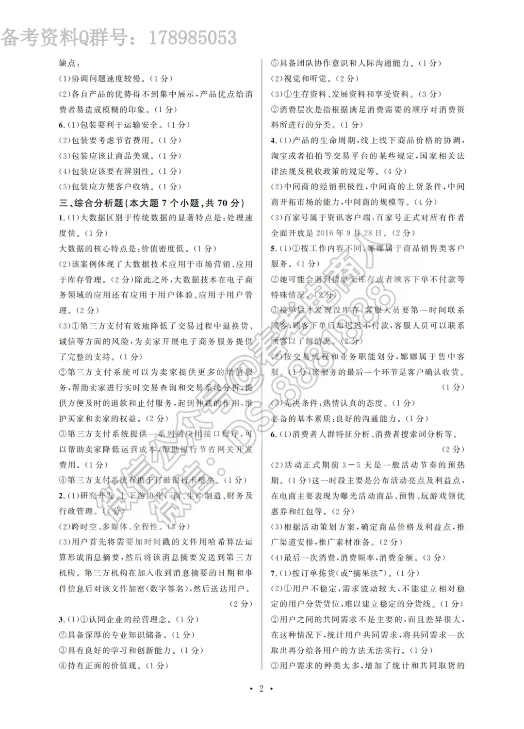 >电子版可下载!六套春考电子商务综合试卷+答案