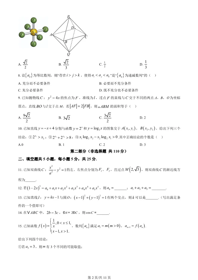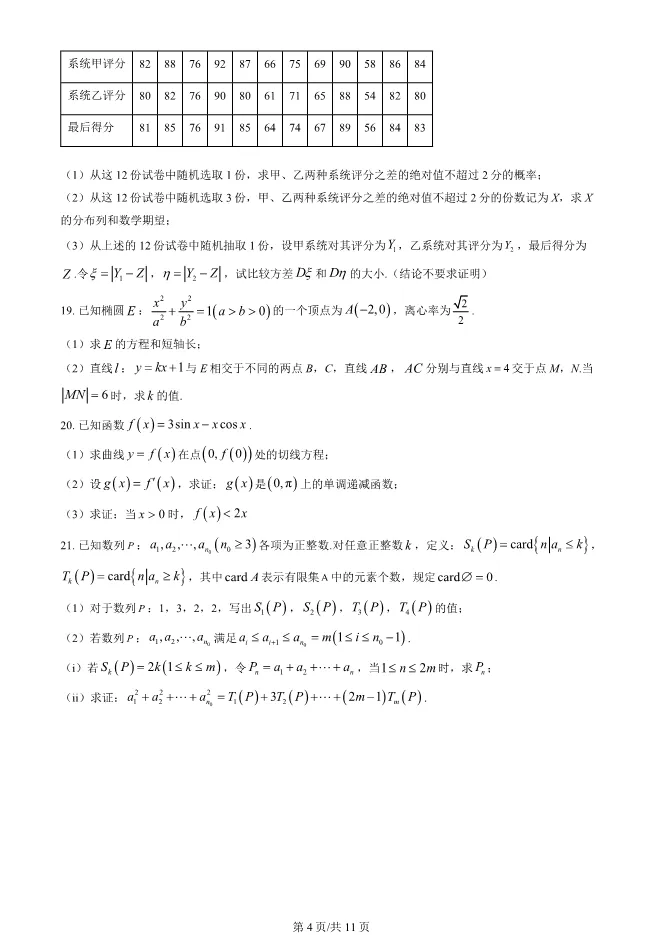 2024年福建高考数学试卷及答案