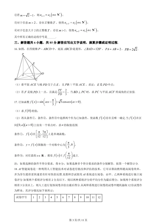 2025北京顺义高三一模数学试卷(有答案) ;word版本可下载使用;