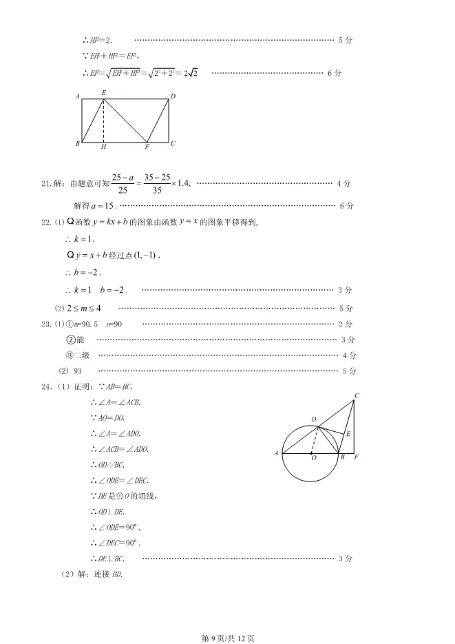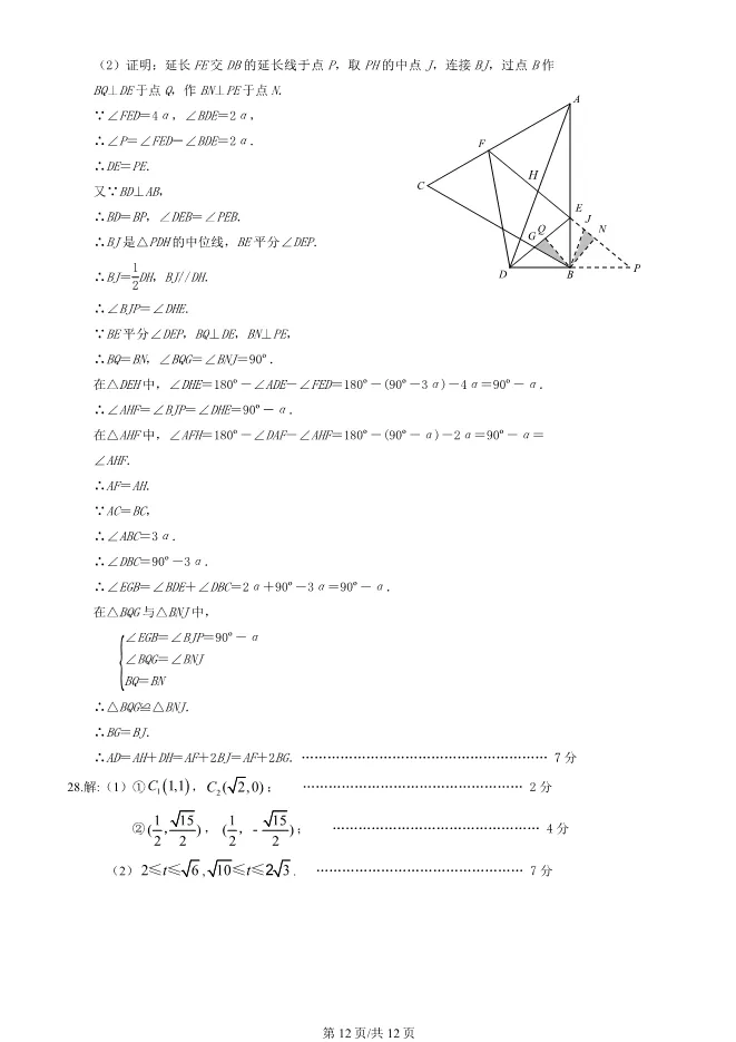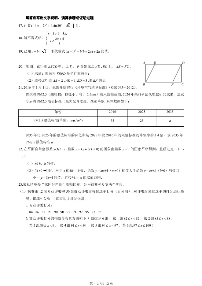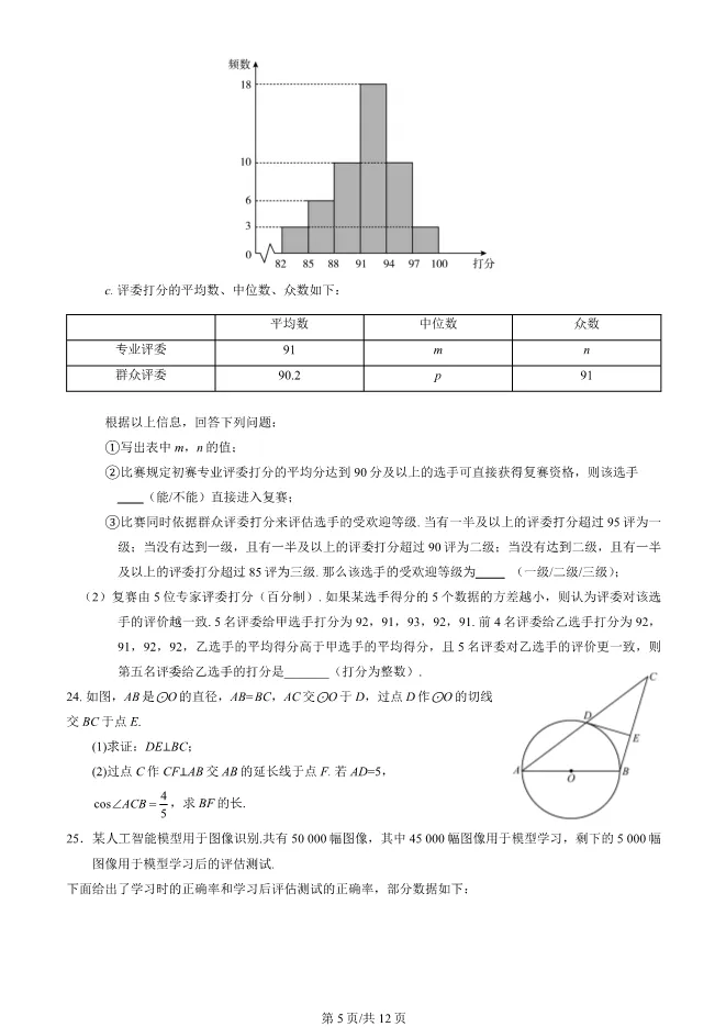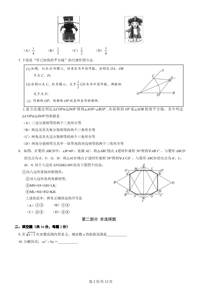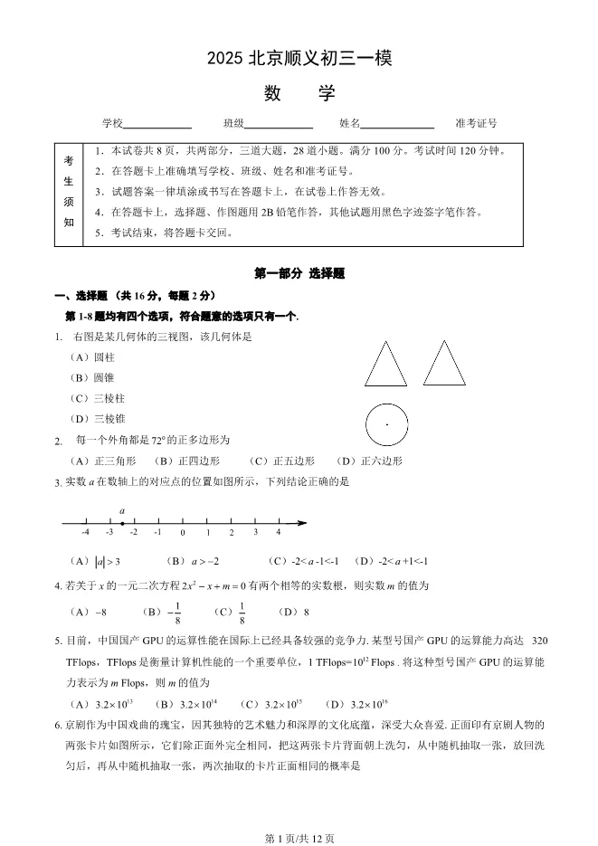 2025北京顺义初三一模数学试卷(有答案) ;word版本可下载使用;